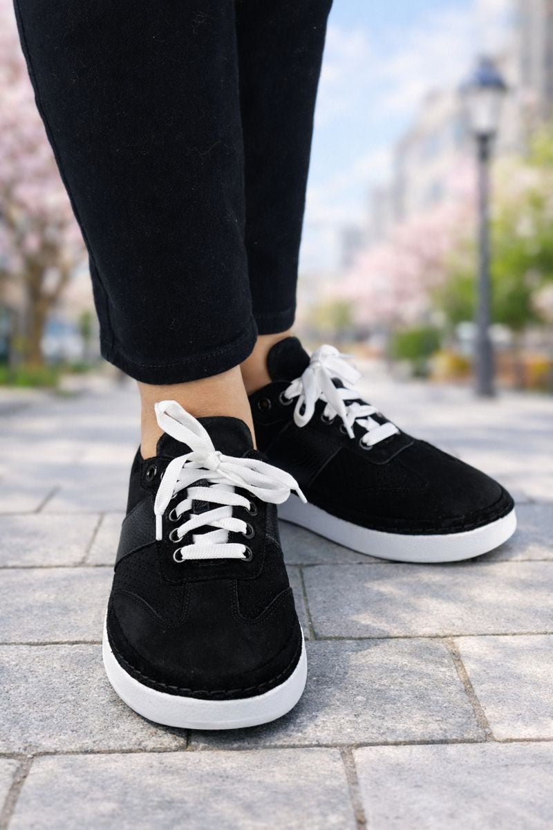 Sneakersii damă negri sunt un model esențial, versatil și ușor de integrat în orice garderobă. Realizați din piele naturală netedă și velur, aceștia oferă un echilibru ideal între eleganță și confort, fiind potriviți pentru purtare zilnică.
