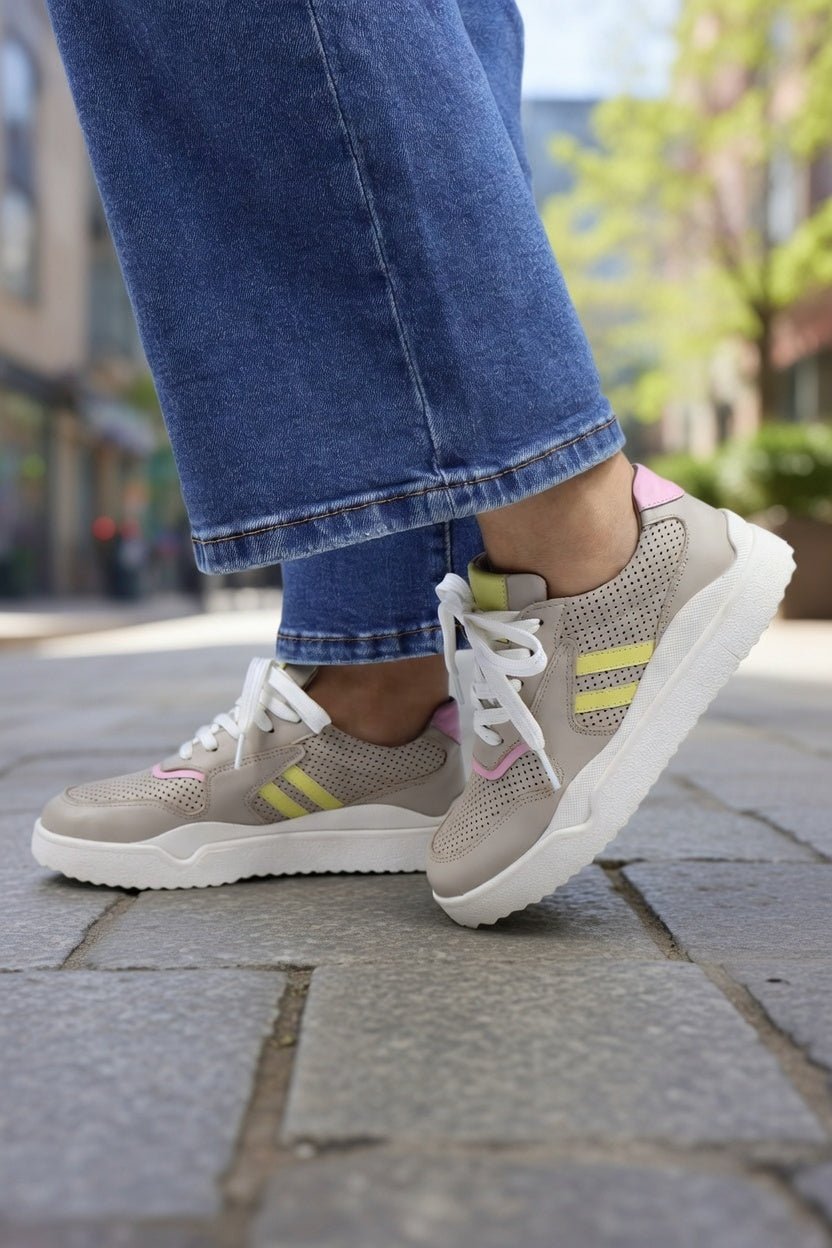 Sneakers din Piele Gri cu Galben - PESTY TAUPEPantofi sport damaBigiottos Shoes