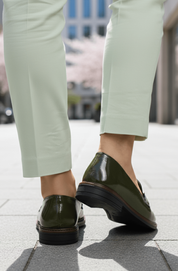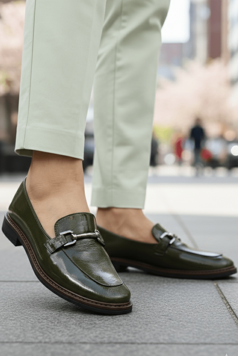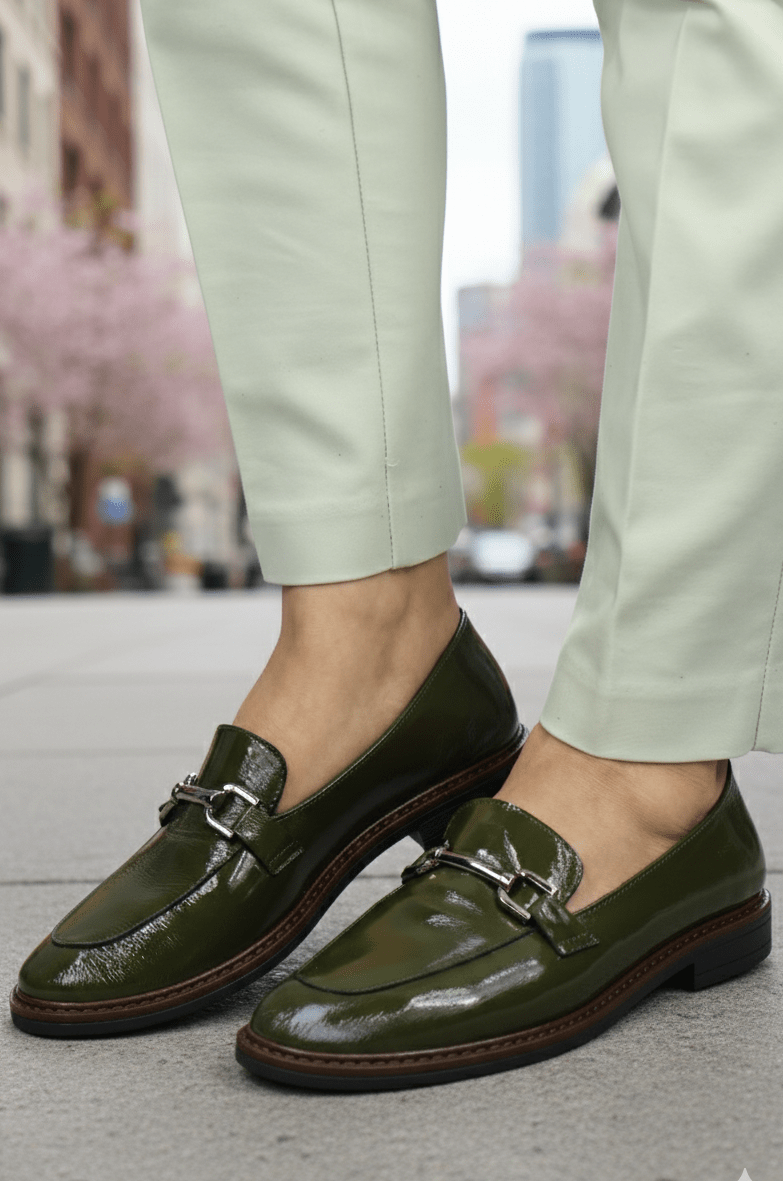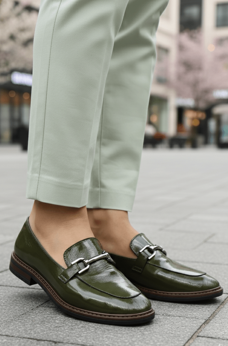Pantofi gen Loafers din Piele Lac cu Accesoriu - LORE GREEN
