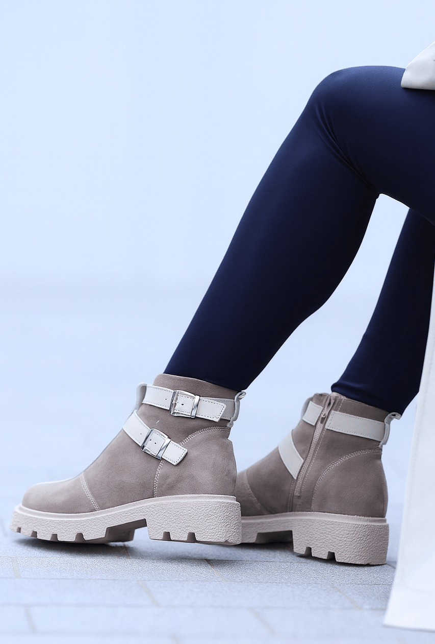 Ghete Casual Dama din Piele cu Catarame BEJ - TRYSS