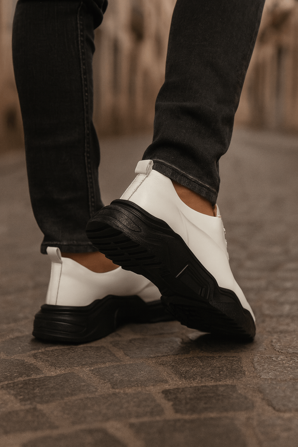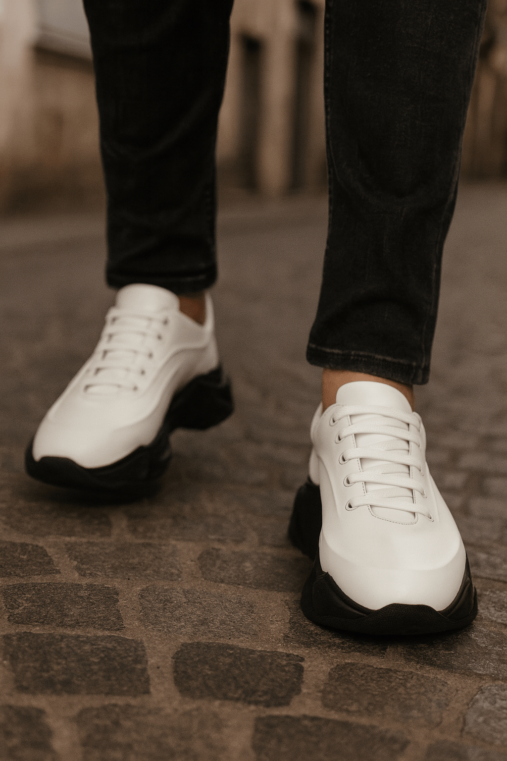 Alege un look modern și versatil cu acești pantofi sport din piele naturală albă cu talpă groasă neagră, perfecți pentru ținutele de zi cu zi. Construiți din piele premium, oferă durabilitate, confort și respirabilitate, în timp ce talpa ergonomică asigură stabilitate și susținere pe tot parcursul zilei. Designul minimalist, dar sofisticat, îi face ideali pentru combinații casual sau streetwear, potrivindu-se atât cu jeans, cât și cu ținute smart-casual.
