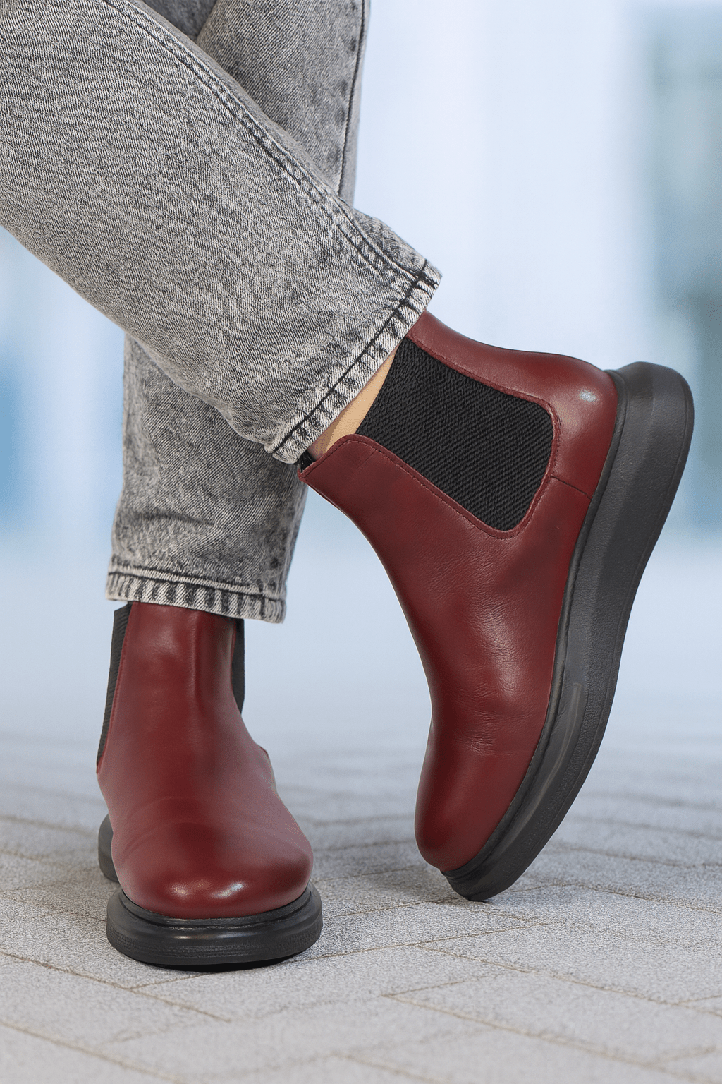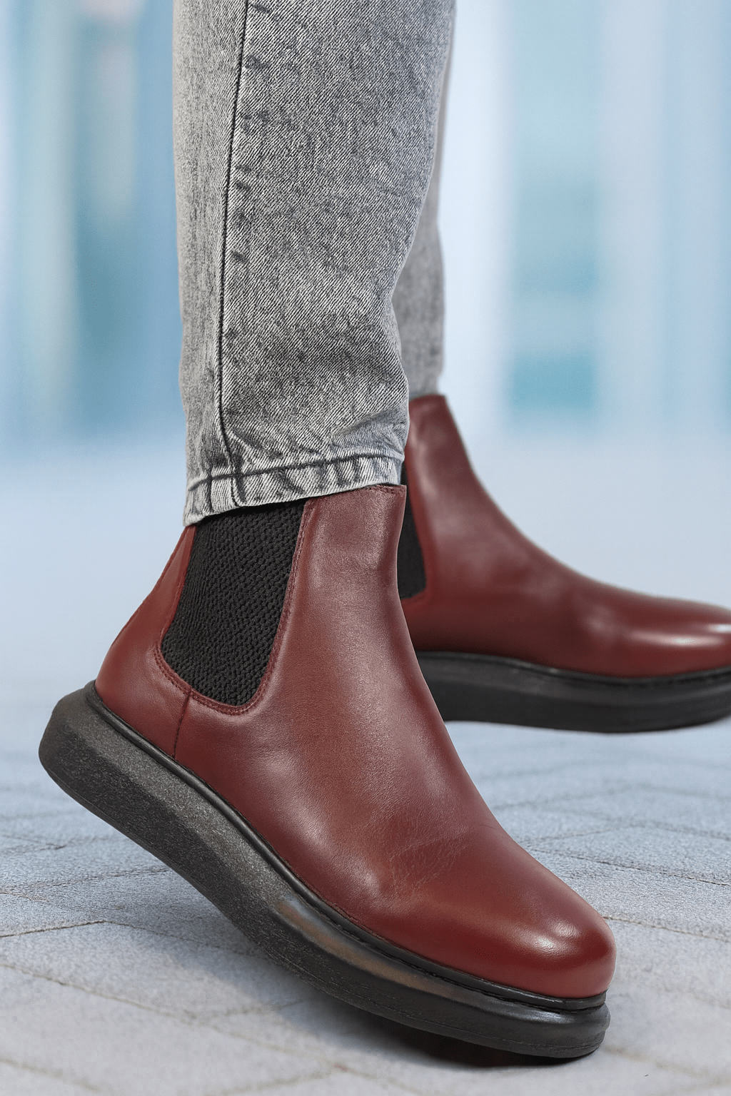 Redefinește-ți stilul urban cu aceste ghete Chelsea pentru bărbați din piele naturală roșu-burgundy, o combinație perfectă între eleganță modernă și confort zilnic. Pielea fină de înaltă calitate oferă un aspect rafinat, iar elasticul lateral asigură o potrivire ideală și o încălțare ușoară.