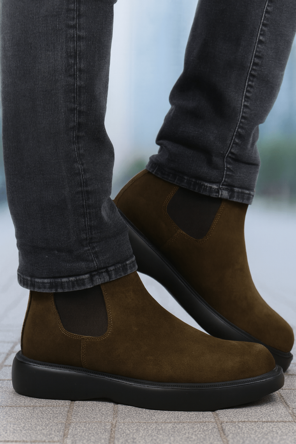 Simplitate, rafinament și confort – aceste ghete Chelsea din piele întoarsă camel sunt alegerea ideală pentru barbatul modernă care apreciază stilul curat și elegant.