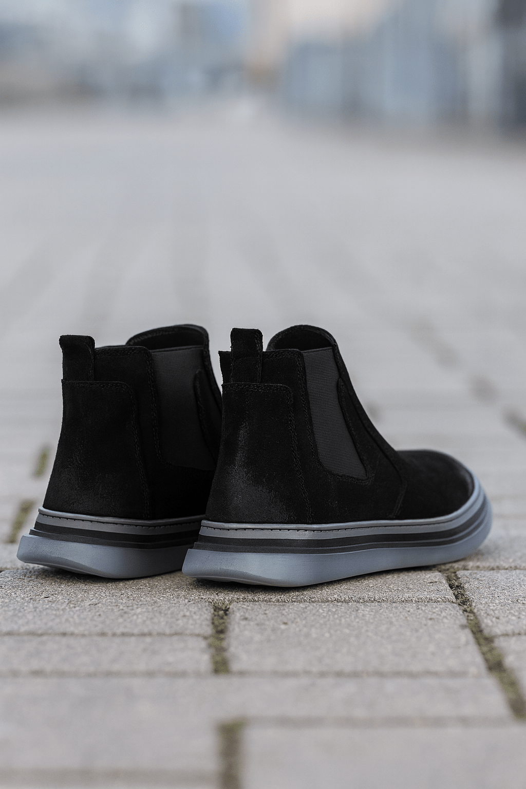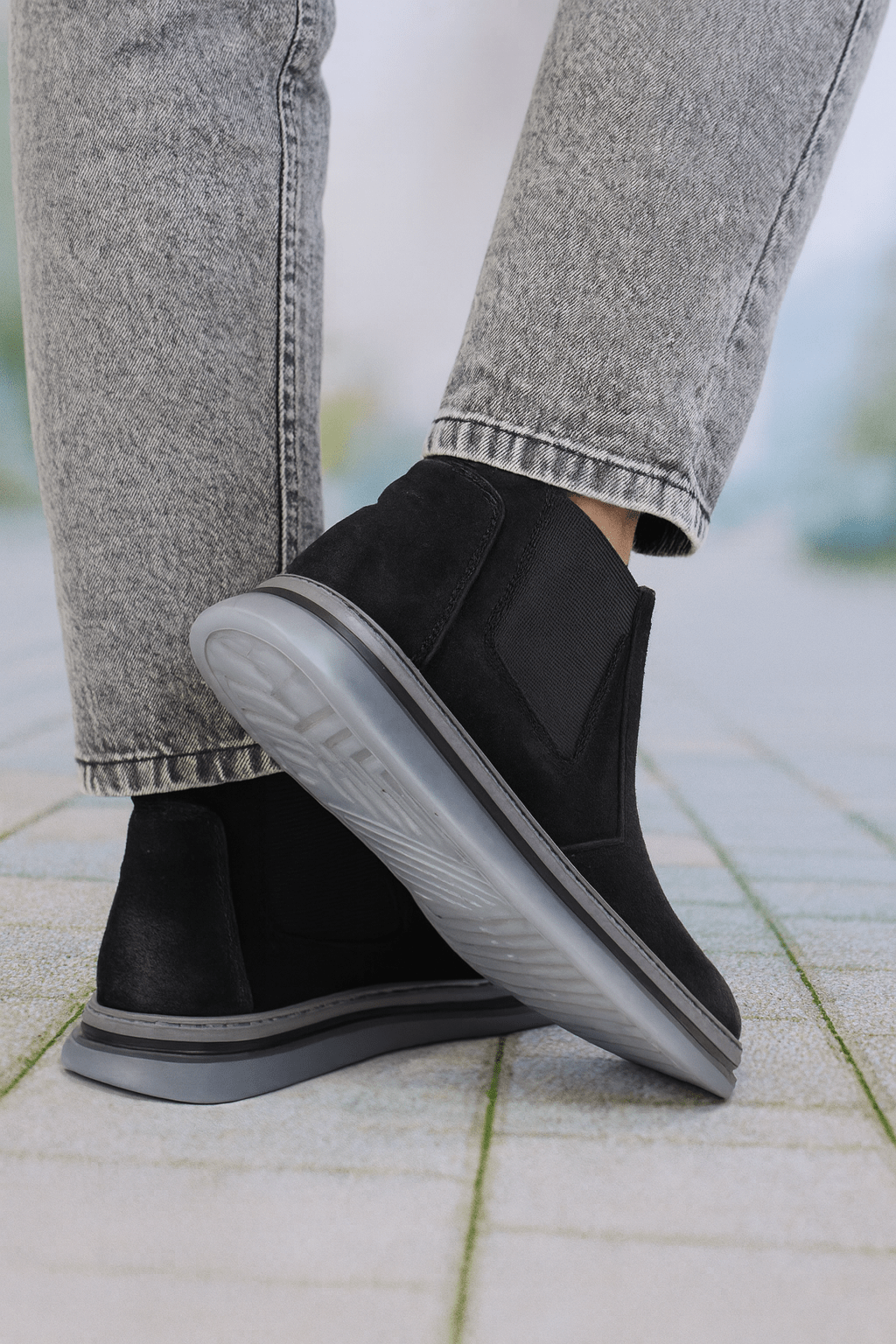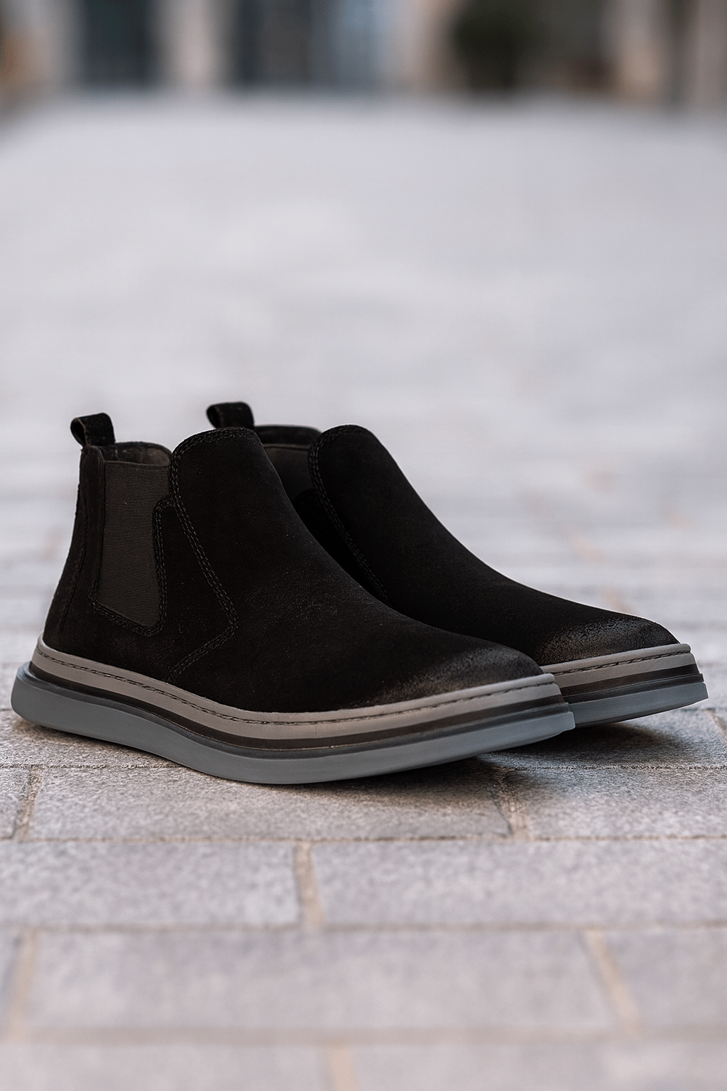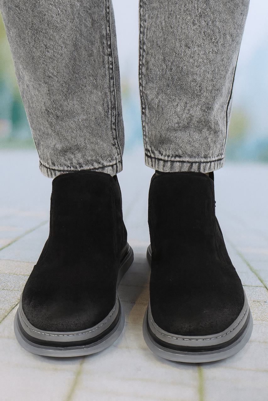 Adaugă un plus de rafinament ținutelor tale cu aceste ghete tip Chelsea din piele întoarsă neagră, concepute pentru bărbatul modern care apreciază stilul și confortul. Modelul prezintă o talpă gri-transparentă ușoară, cu amortizare excelentă, oferind stabilitate și un aspect contemporan.