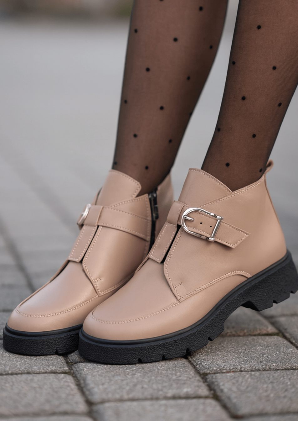 Aceste ghete damă din piele naturală PREMIUM taupe îmbină perfect confortul cu eleganța modernă. Modelul este pus în valoare de banda decorativă cu catarama metalică argintie, care adaugă un plus de stil și unicitate.