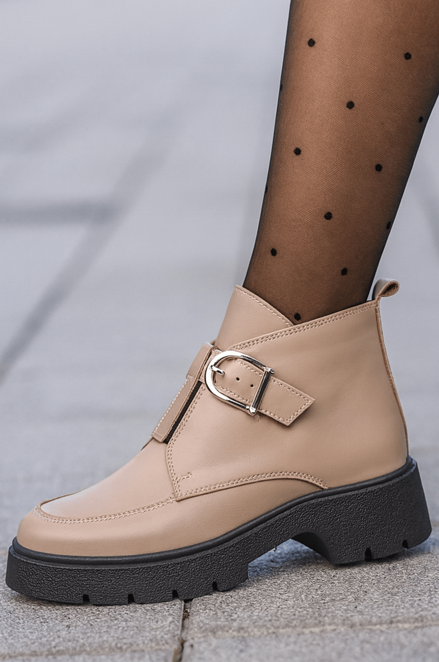 Ghete Casual Dama din Piele Taupe cu Catarama - DIME