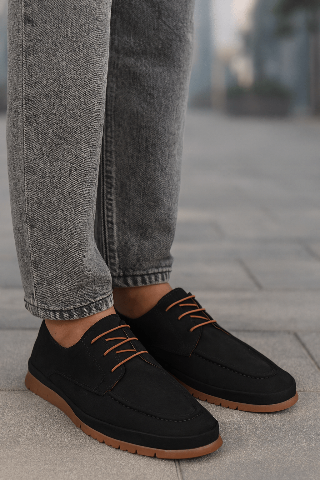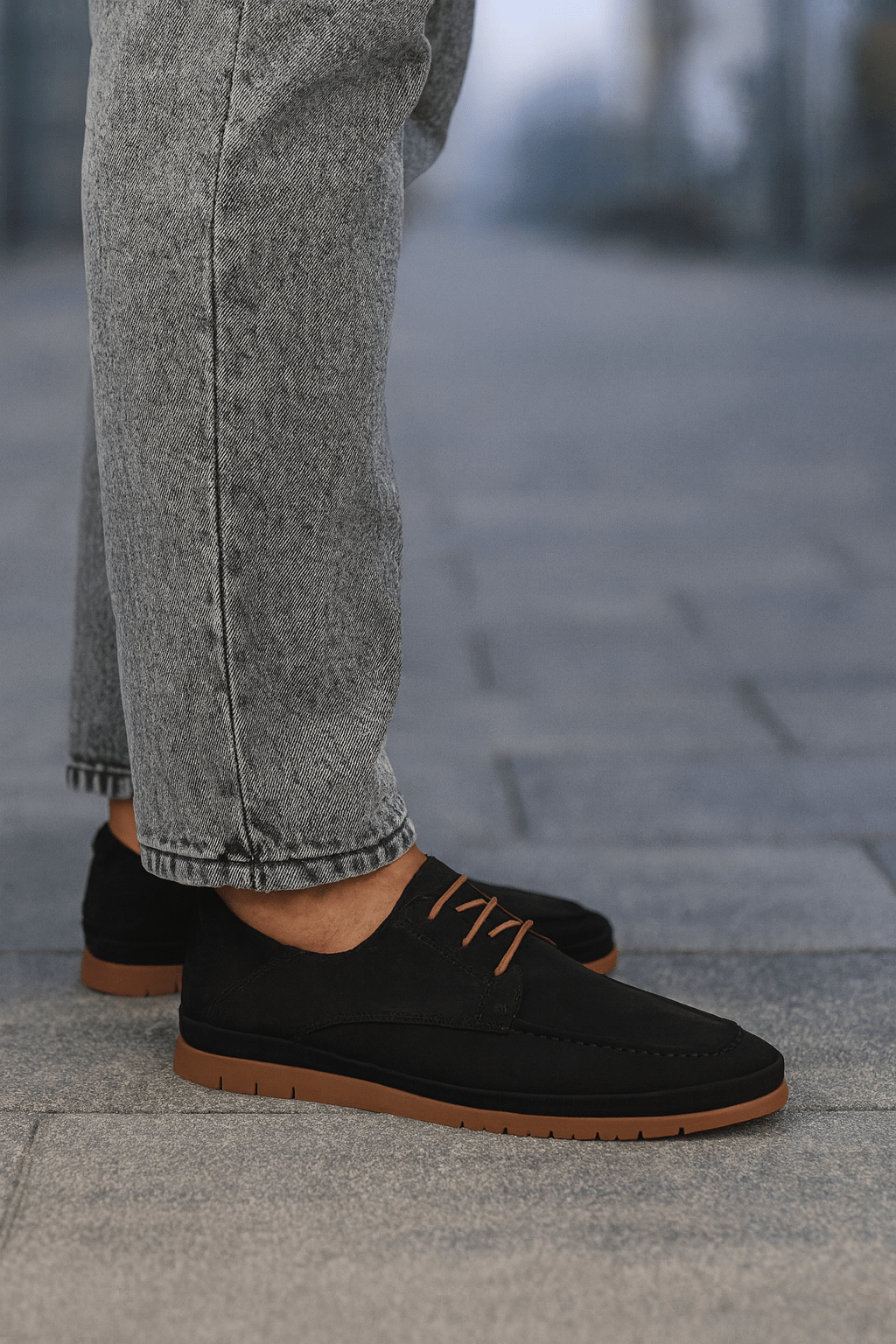 Pantofi casual bărbați din piele nubuk negru cu talpă confortabilă și design modern