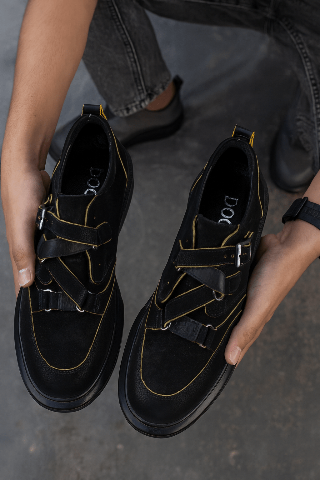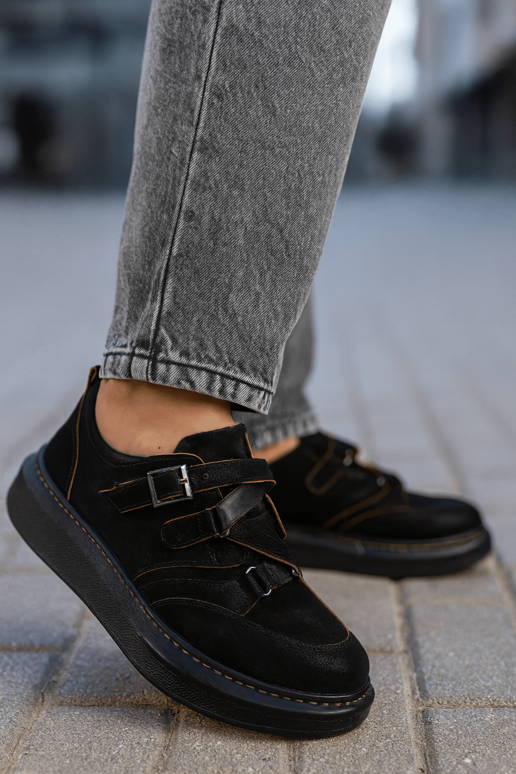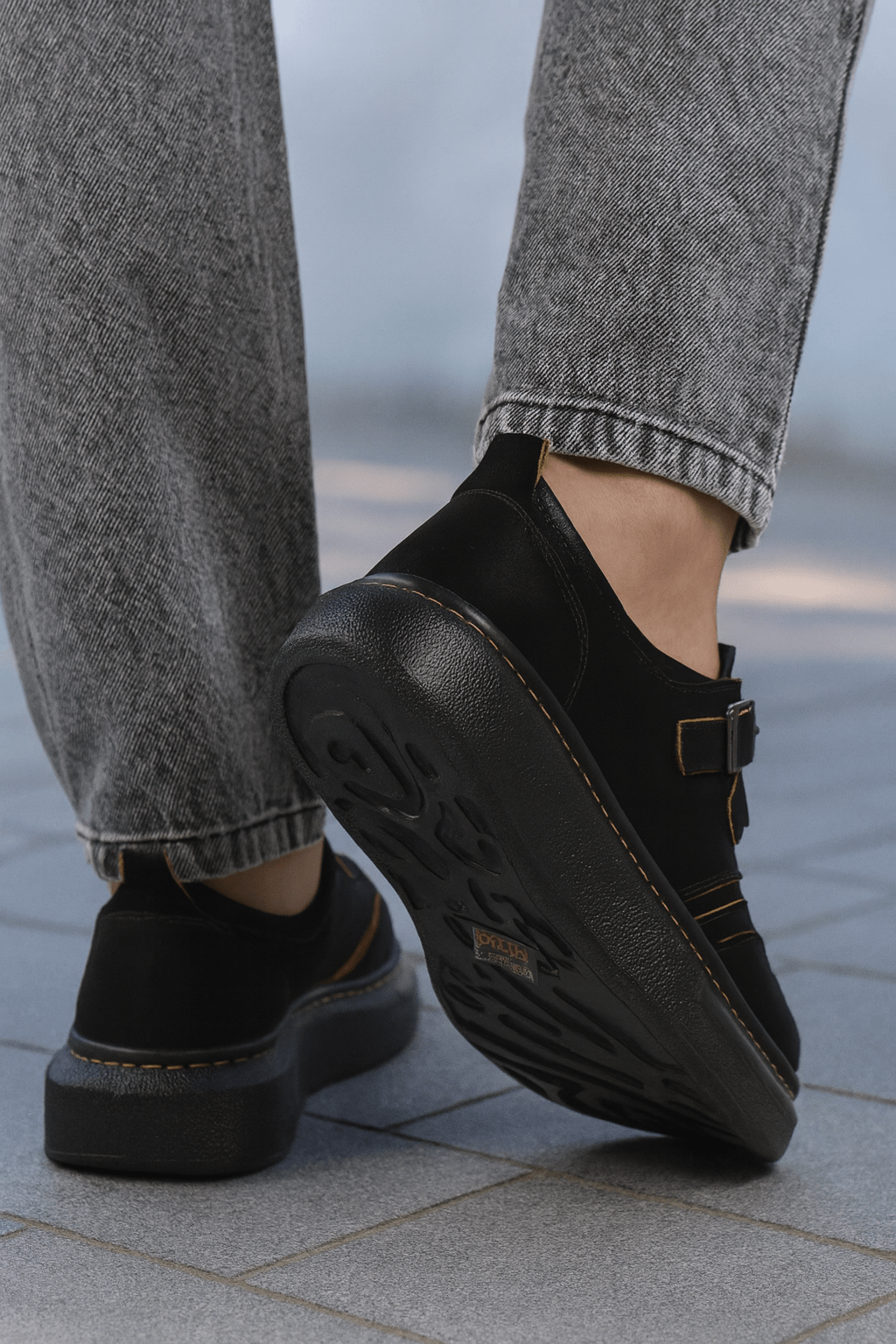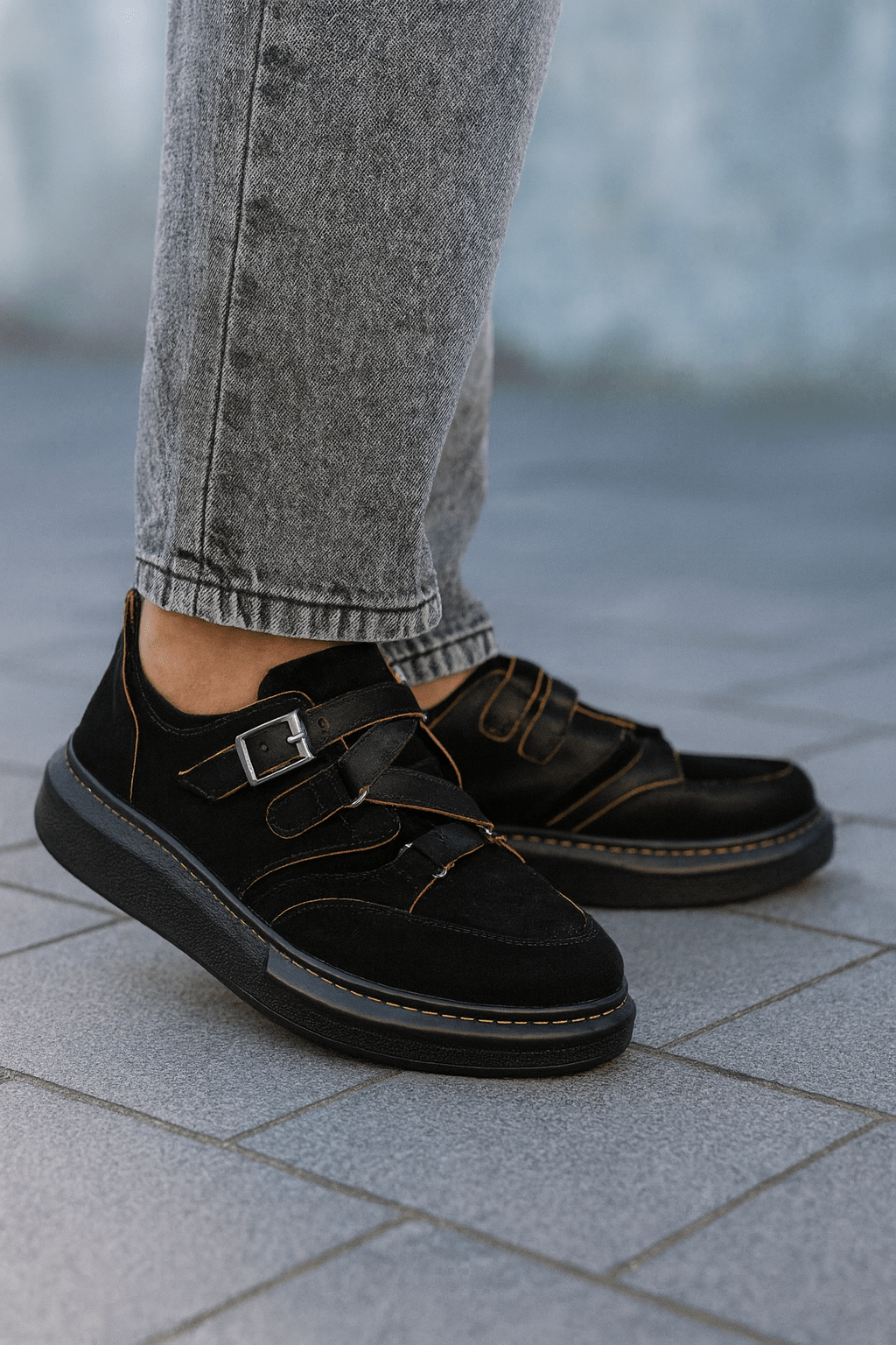 Alege confortul și stilul urban cu acești pantofi sport casual din piele nubuk neagră, un model versatil ideal pentru ținutele de zi cu zi. Designul modern este evidențiat de catarama metalică reglabilă și cusăturile contrastante care adaugă un detaliu aparte. Talpa groasă, flexibilă și rezistentă oferă stabilitate și confort pe durata întregii zile, fiind perfectă pentru plimbări sau activități urbane.