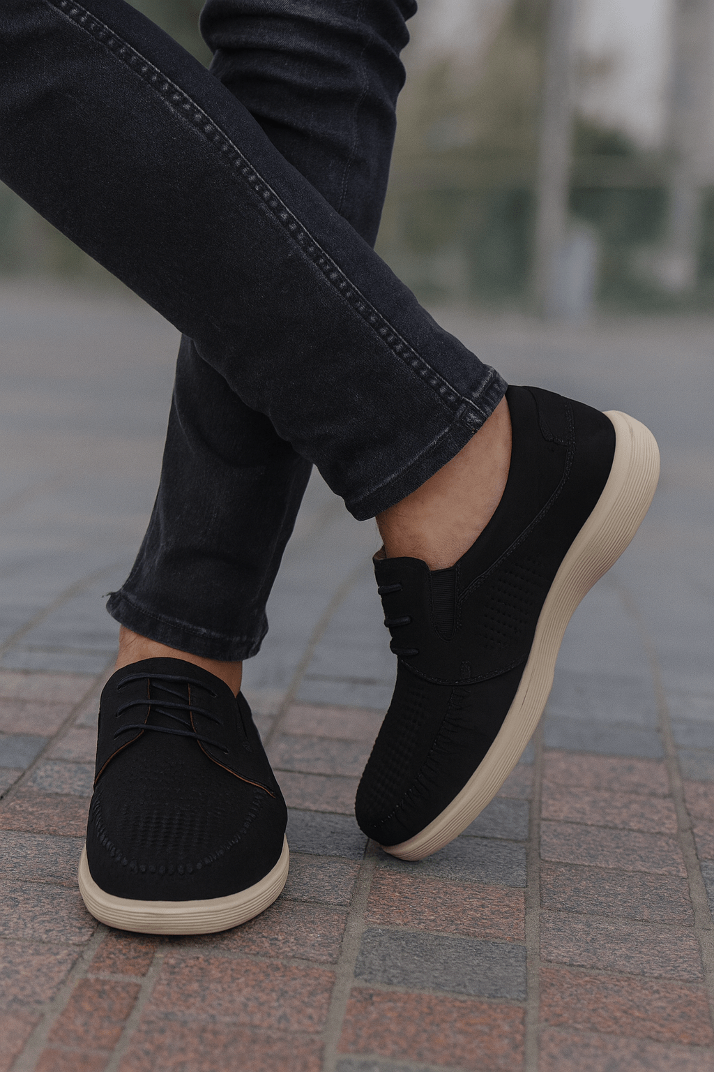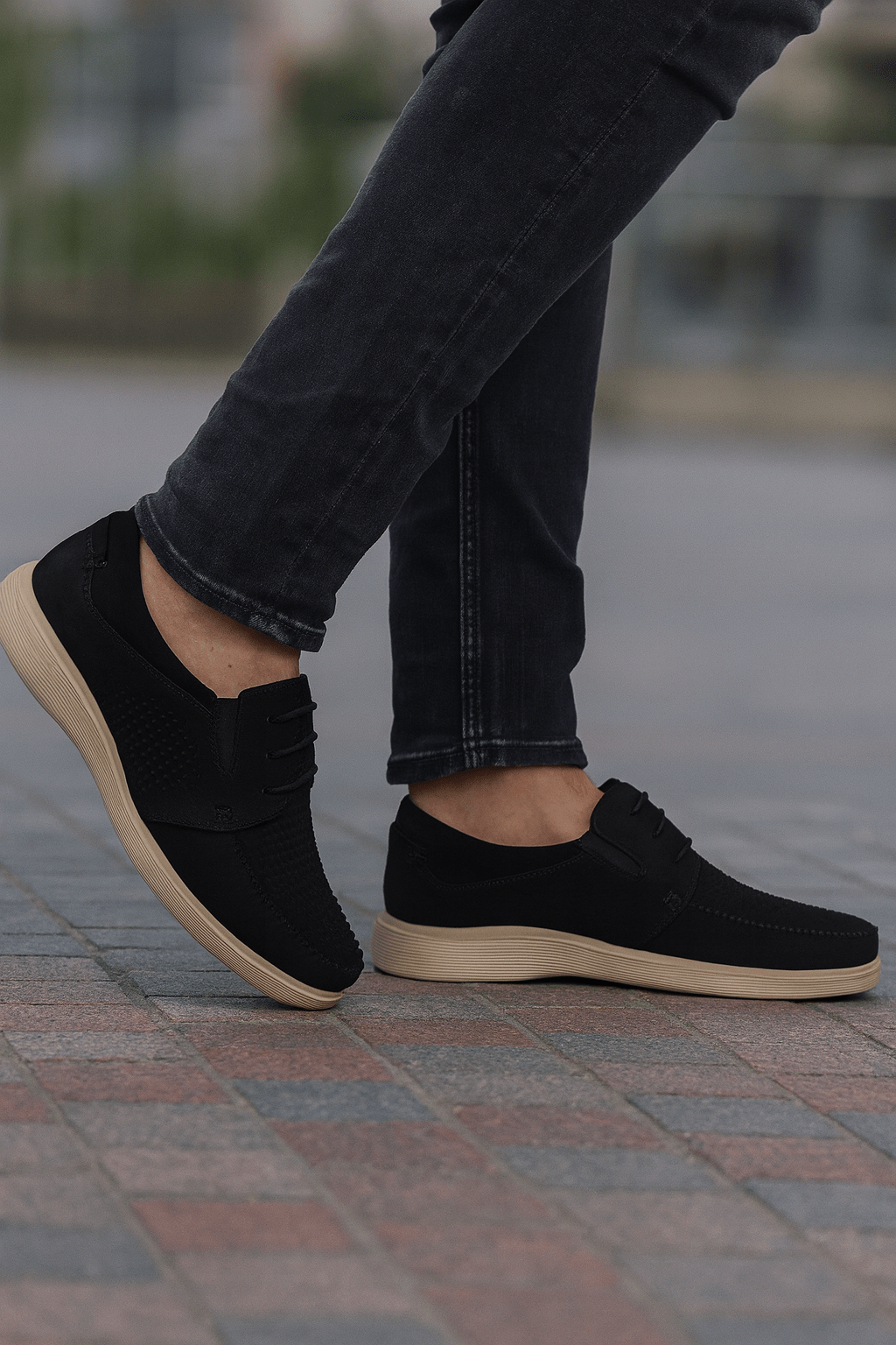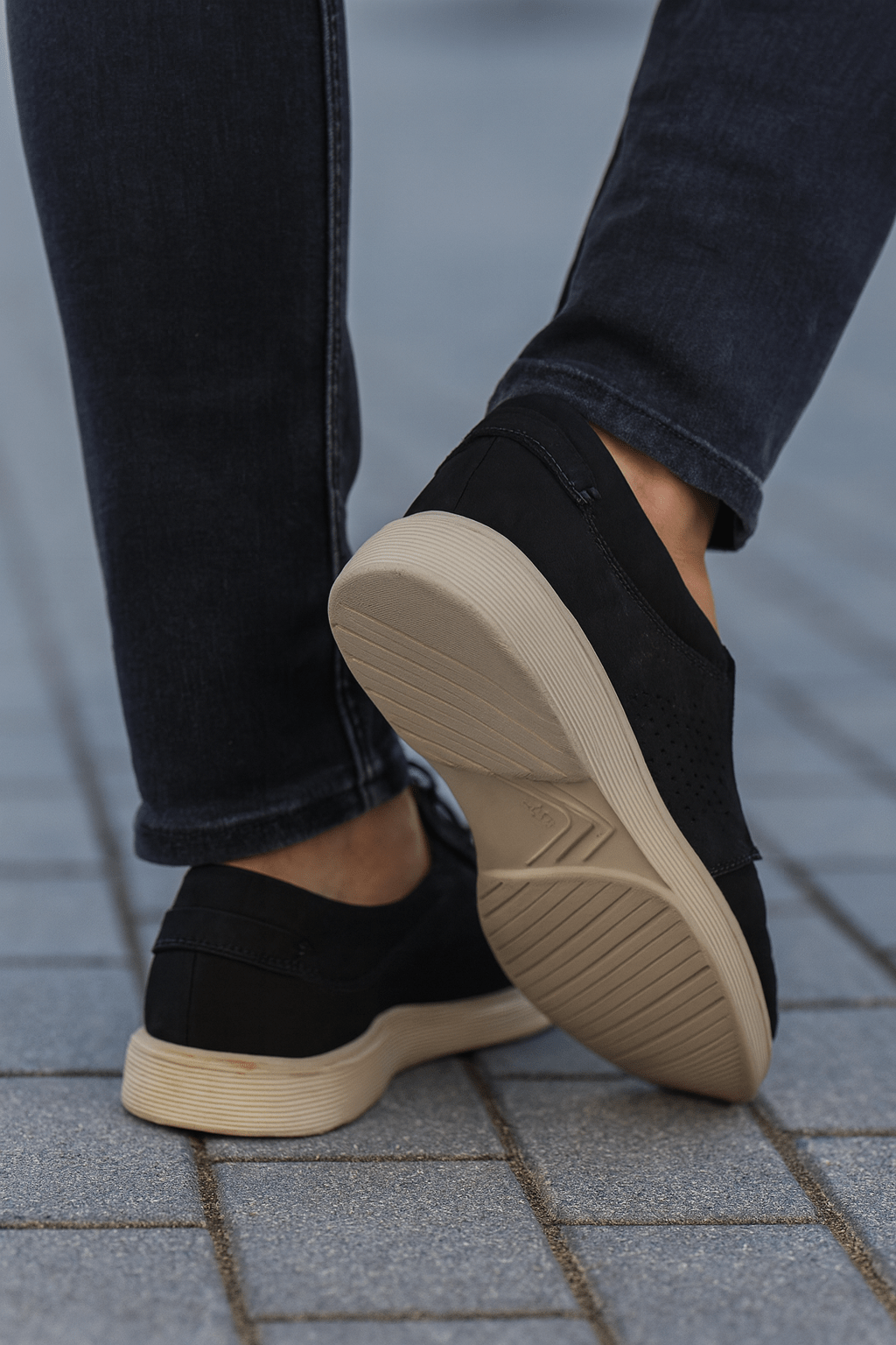 Pantofi casual bărbați din piele nubuk negri cu design modern și talpă confortabilă