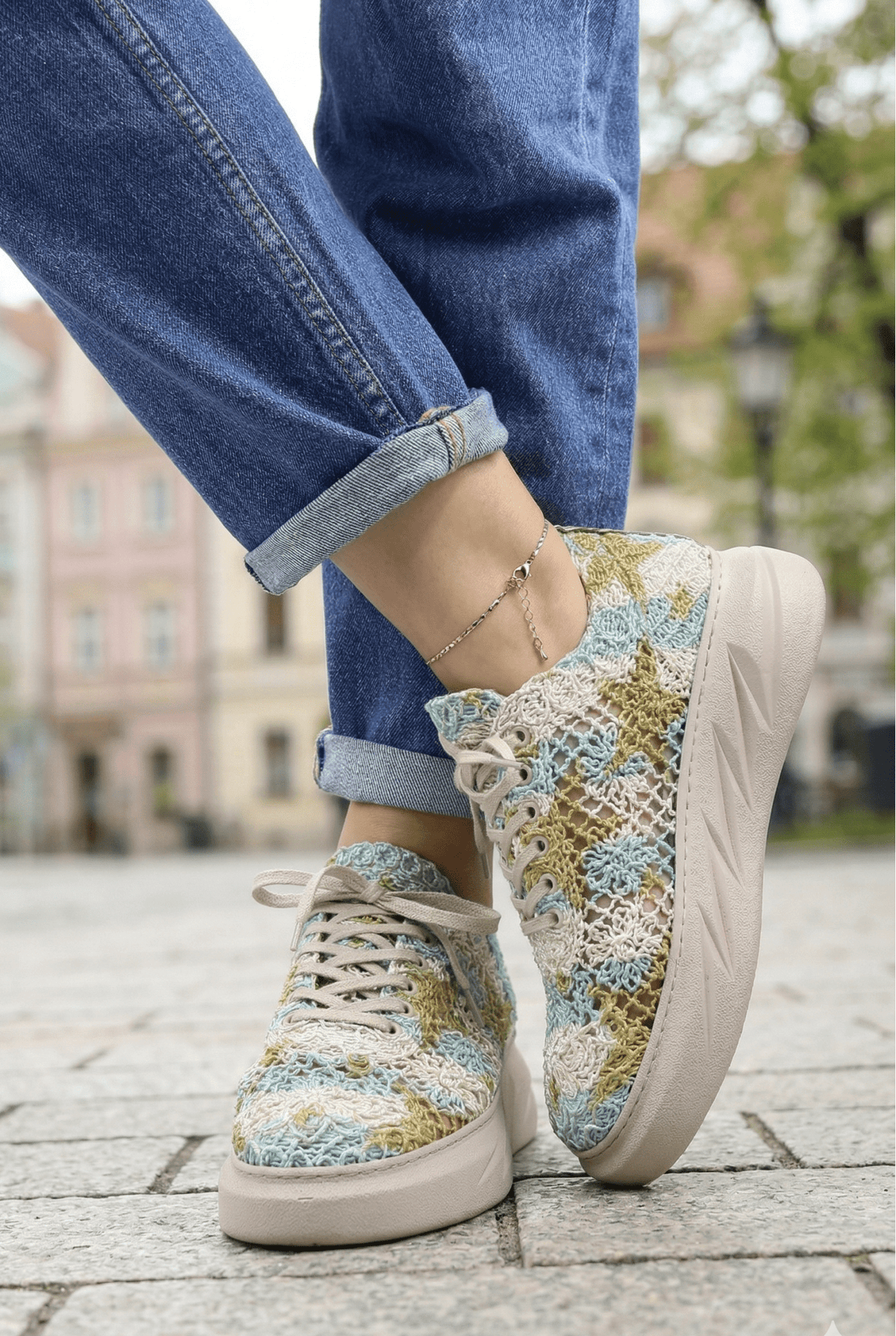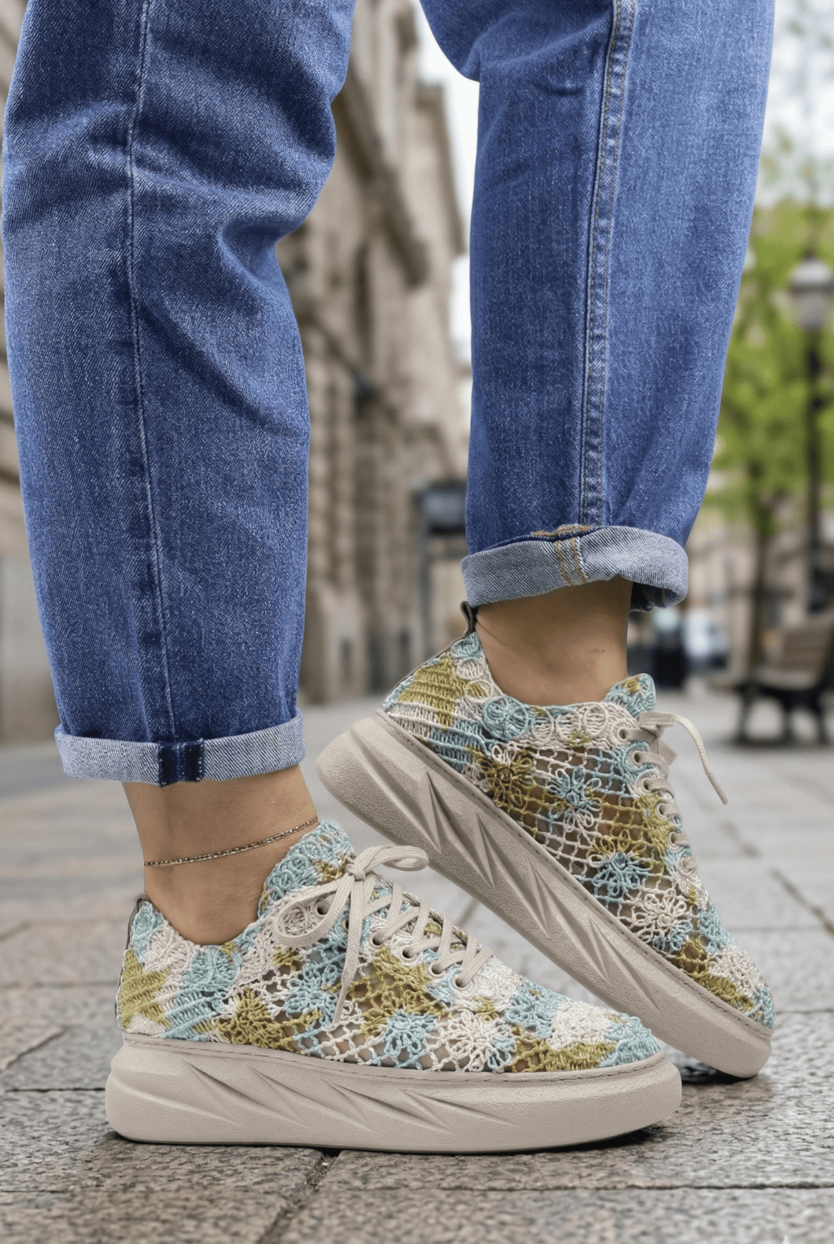 Descoperă pantofii casual damă ,,Sandy'', un model nonconformist și plin de personalitate, perfect pentru femeile care iubesc stilul urban și confortul absolut! Realizați din material de dantela premium si piele naturala, respirabil, acești pantofi fashion se remarcă prin modelul floral deosebit, adăugând o notă vibrantă oricărei ținute. Talpa groasă oferă susținere optimă și un plus de confort pe parcursul întregii zile, fiind ideală pentru plimbări, ieșiri casual sau combinații vestimentare creative. Designul versatil îi face ușor de asortat cu jeanși, pantaloni drepți, rochii casual sau fuste asimetrice, fiind alegerea perfectă pentru un look modern și original.