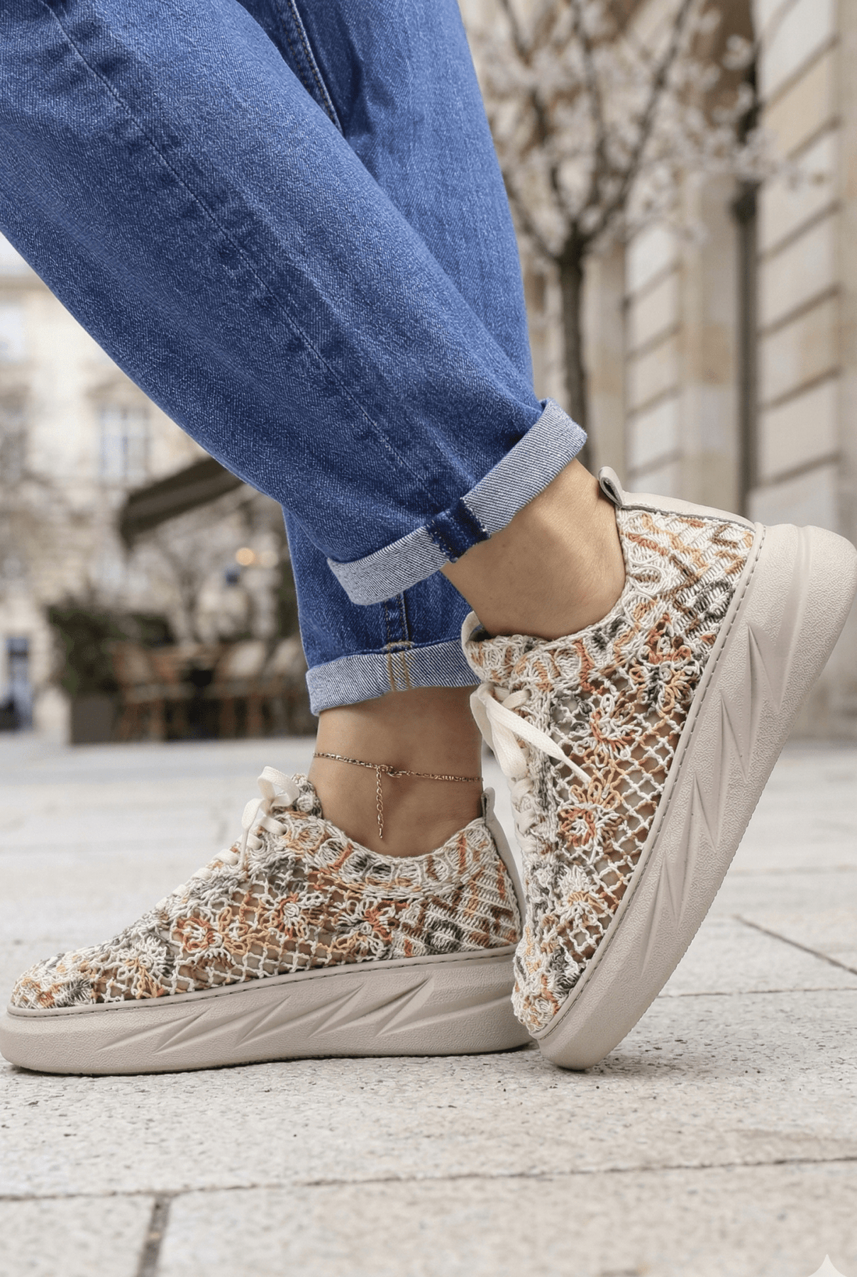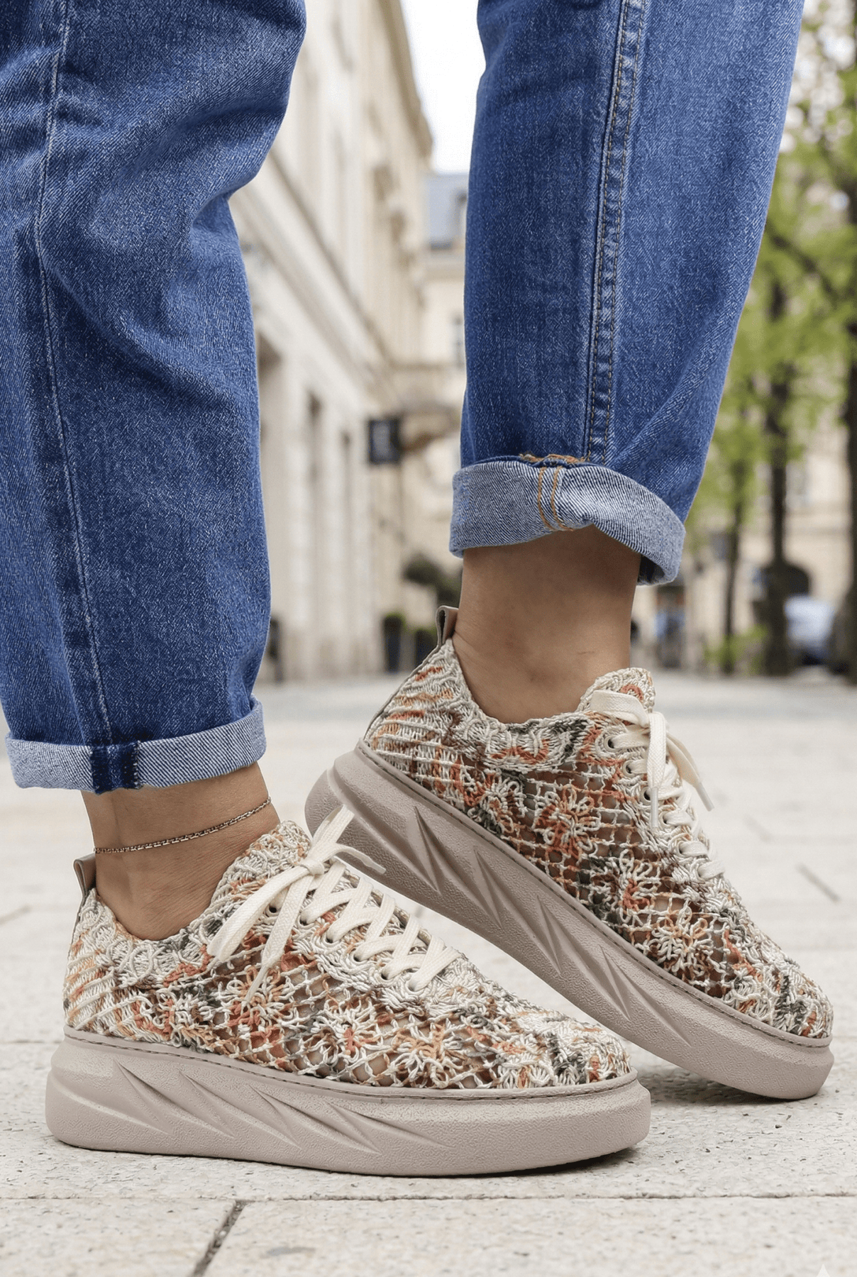 Descoperă pantofii casual damă ,,Sandy'', un model nonconformist și plin de personalitate, perfect pentru femeile care iubesc stilul urban și confortul absolut! Realizați din material de dantela premium si piele naturala super respirabili, acești pantofi bej Multicolor se remarcă prin modelul floral deosebit, adăugând o notă vibrantă oricărei ținute. Talpa groasă oferă susținere optimă și un plus de confort pe parcursul întregii zile, fiind ideală pentru plimbări, ieșiri casual sau combinații vestimentare creative. Designul versatil îi face ușor de asortat cu jeanși, pantaloni drepți, rochii casual sau fuste asimetrice, fiind alegerea perfectă pentru un look modern și original. Alege ,,Sandy'' și adaugă un plus de stil ținutelor tale!