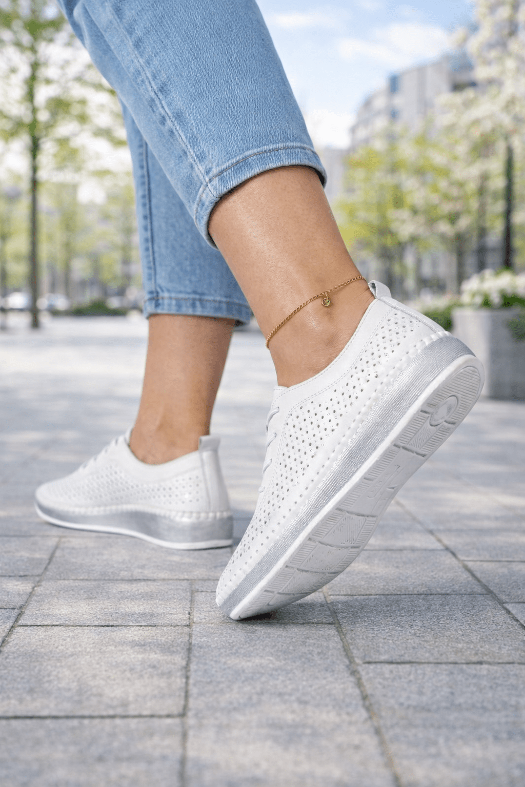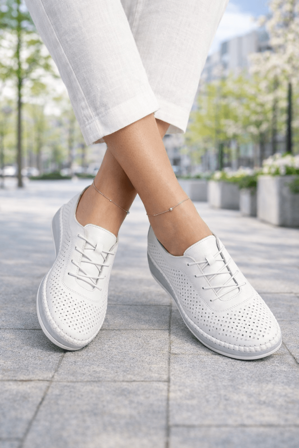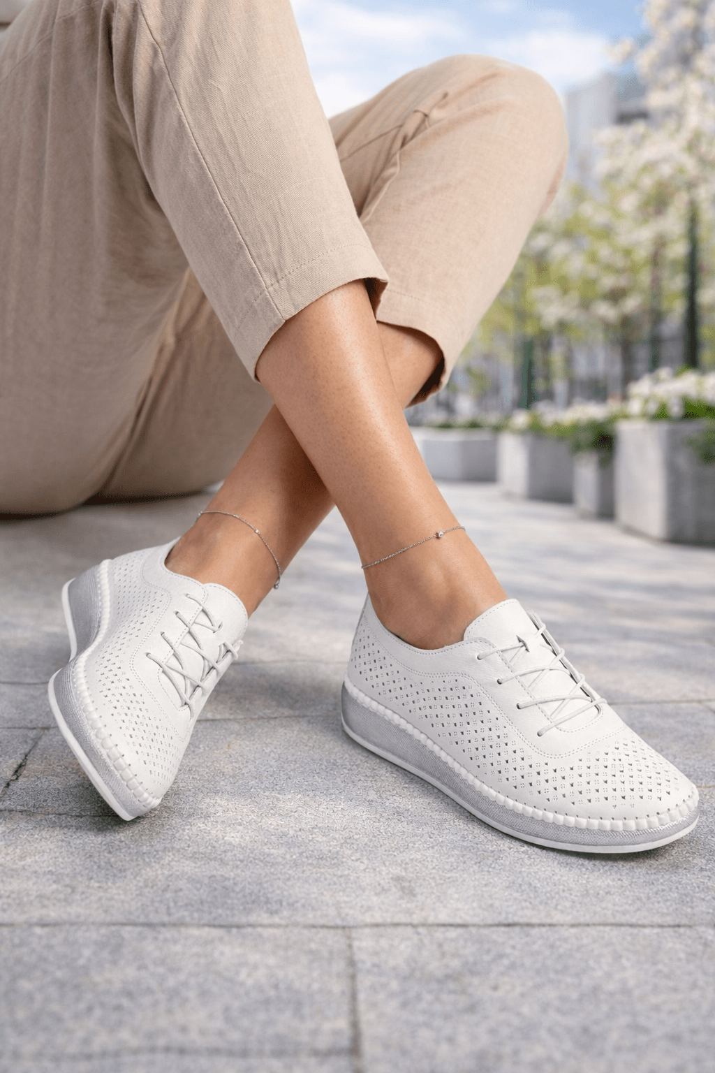 Pantofi Confort din Piele Albi Perforati - ZYX WHITE