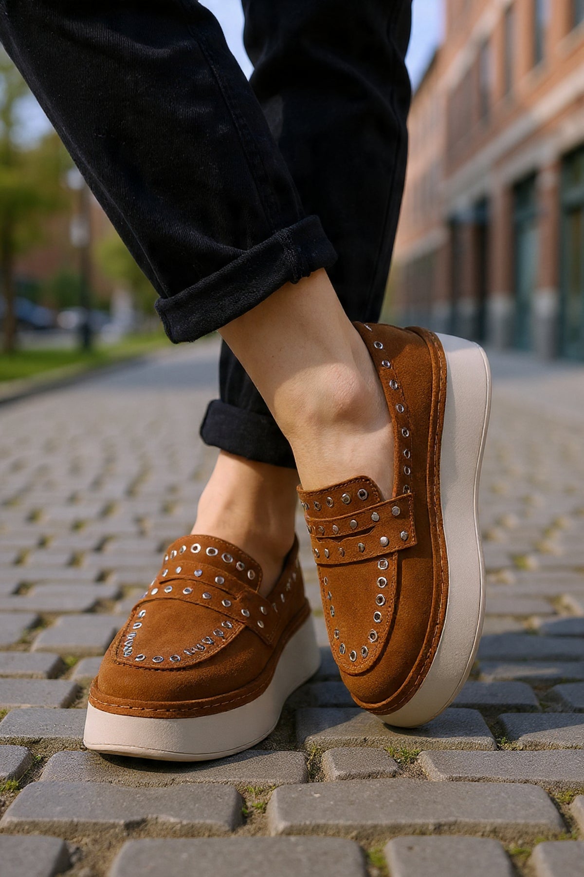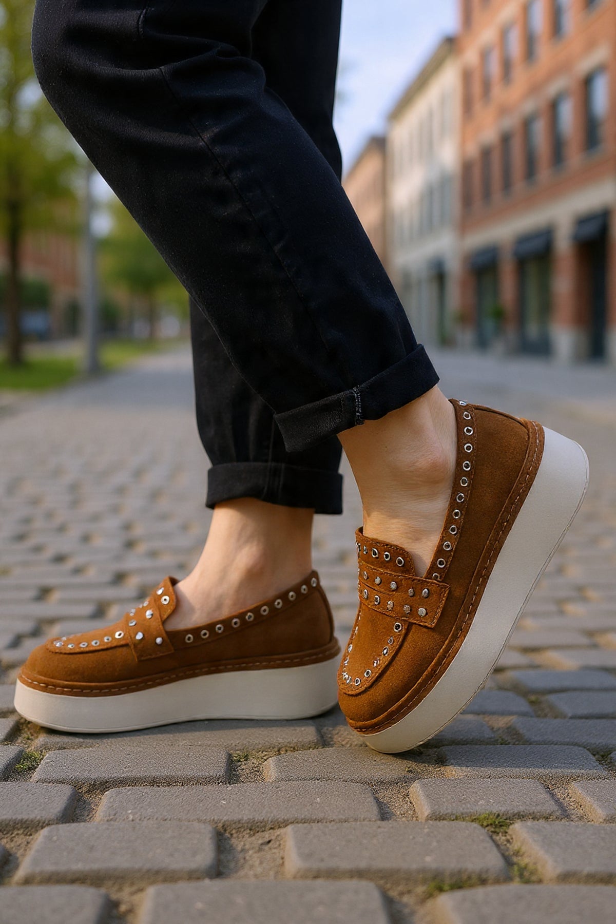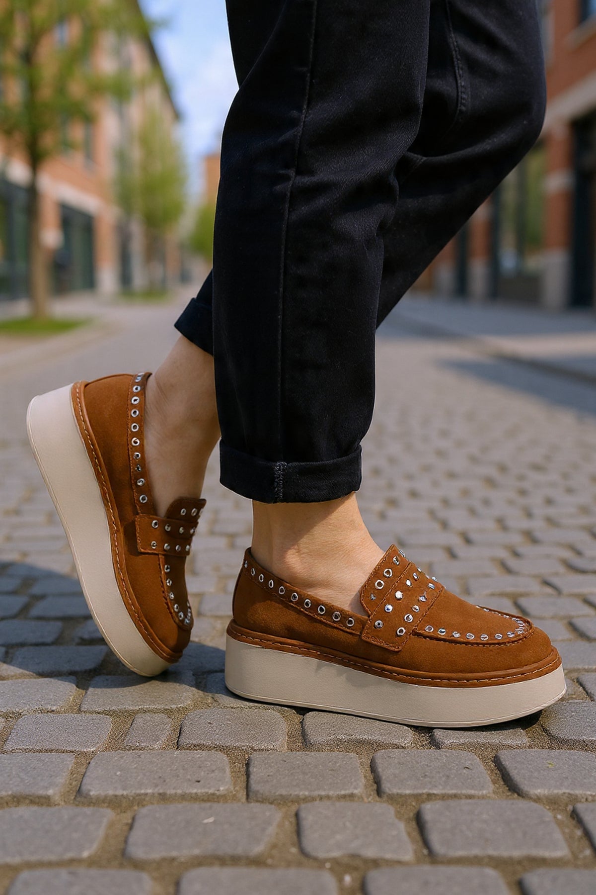 Contrastul dintre pielea camel satinată și talpa gri masivă creează un impact vizual modern, în timp ce detaliile de design, precum zona gleznei bine structurată și perforațiile discrete, asigură un confort termic optim. Sunt alegerea ideală pentru femeia care trăiește într-un ritm alert și are nevoie de încălțăminte care să țină pasul cu dinamismul orașului.