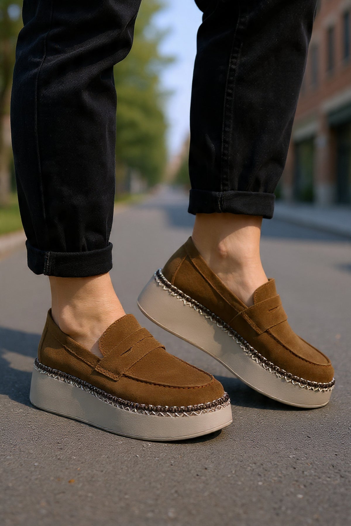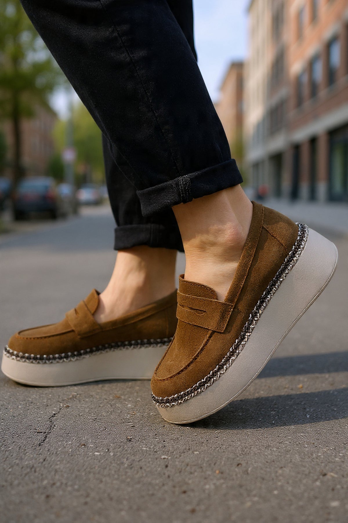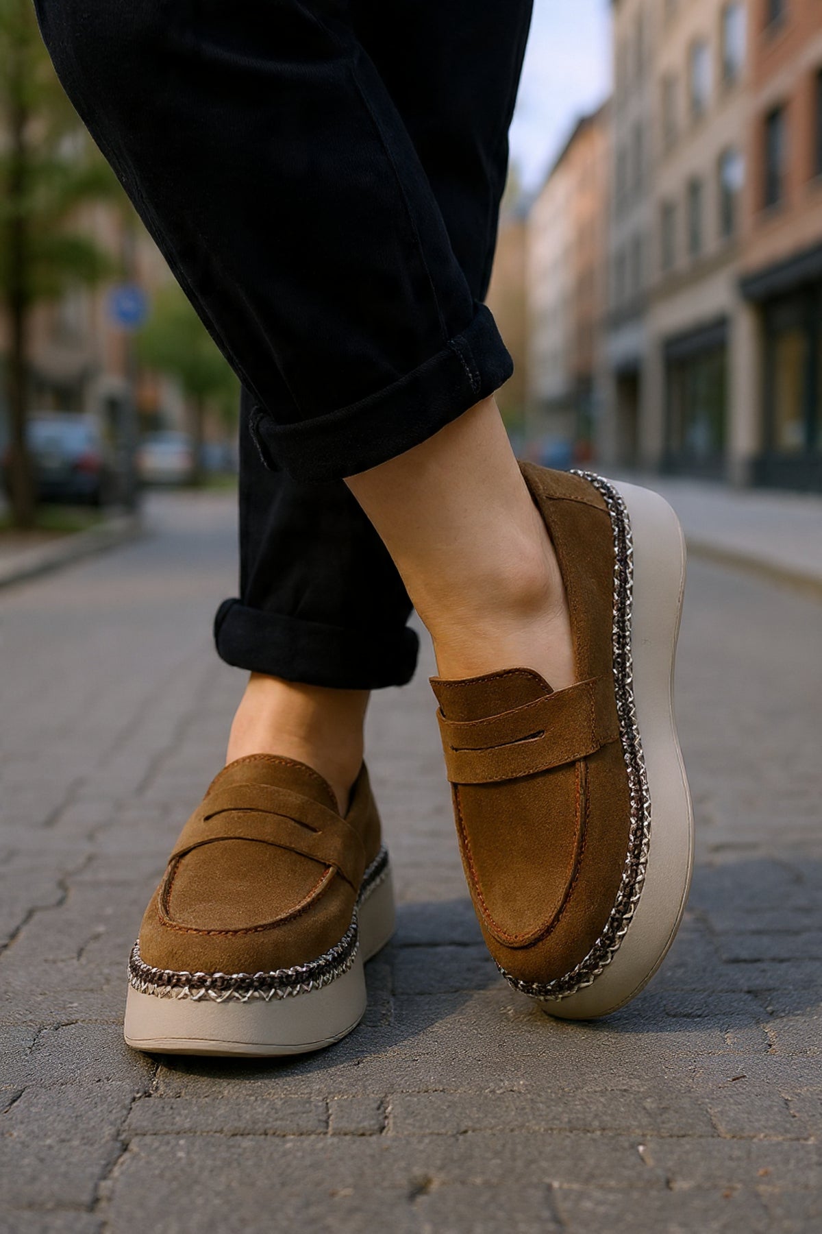 Pantofi tip Mocasin din Piele Cognac - ALEE CAMEL