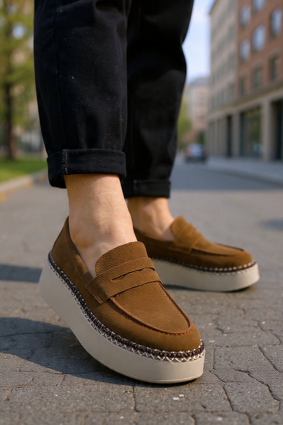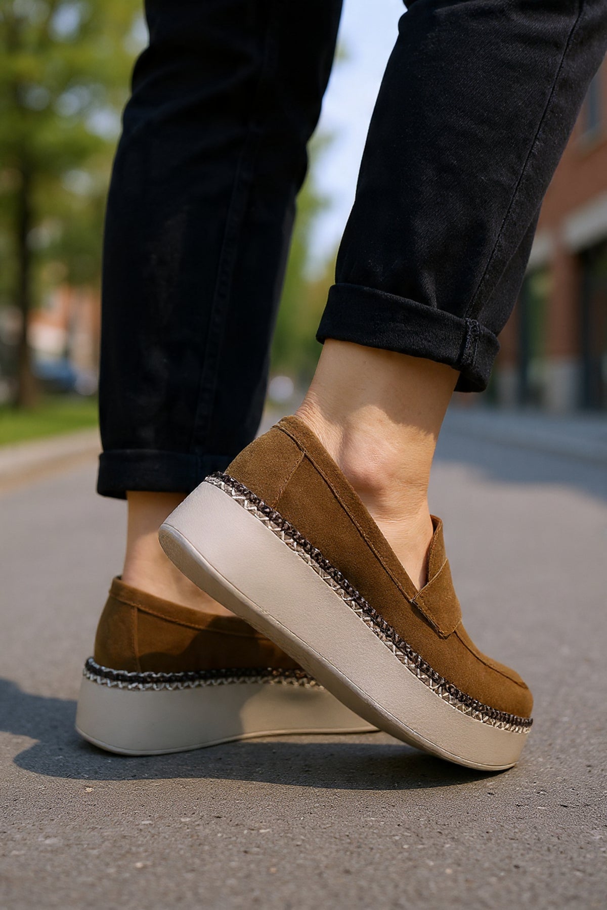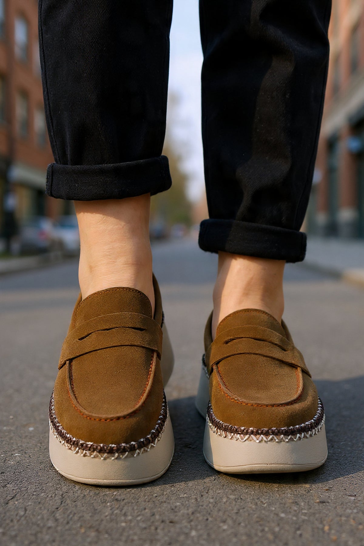 Pantofi tip Mocasin din Piele Cognac - ALEE CAMEL
