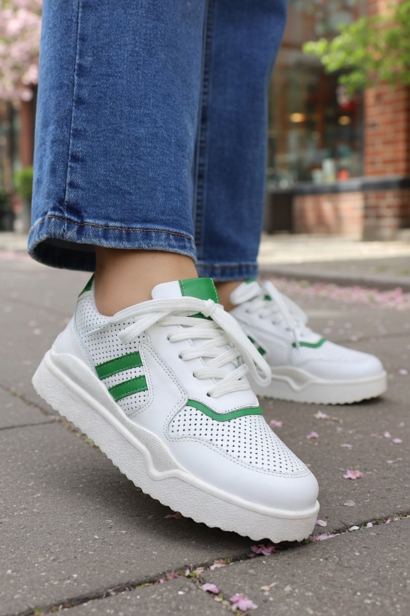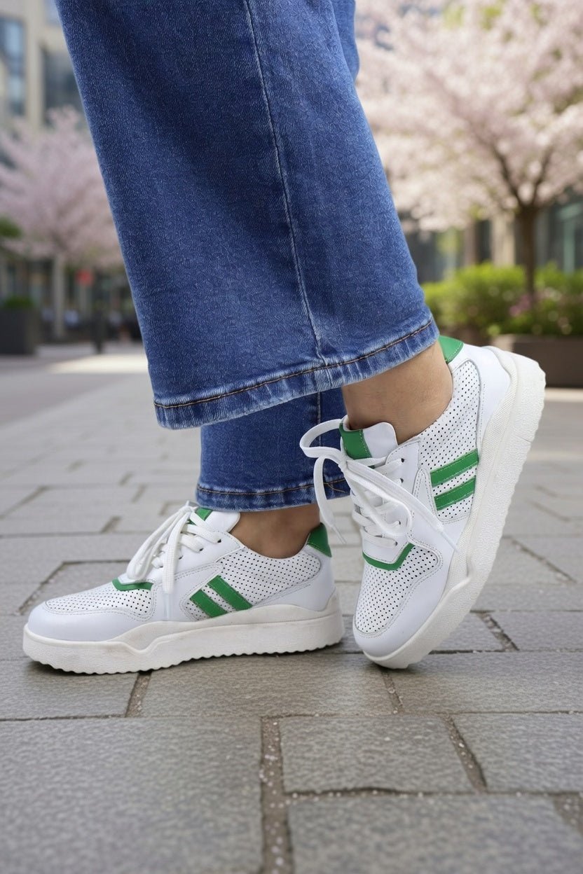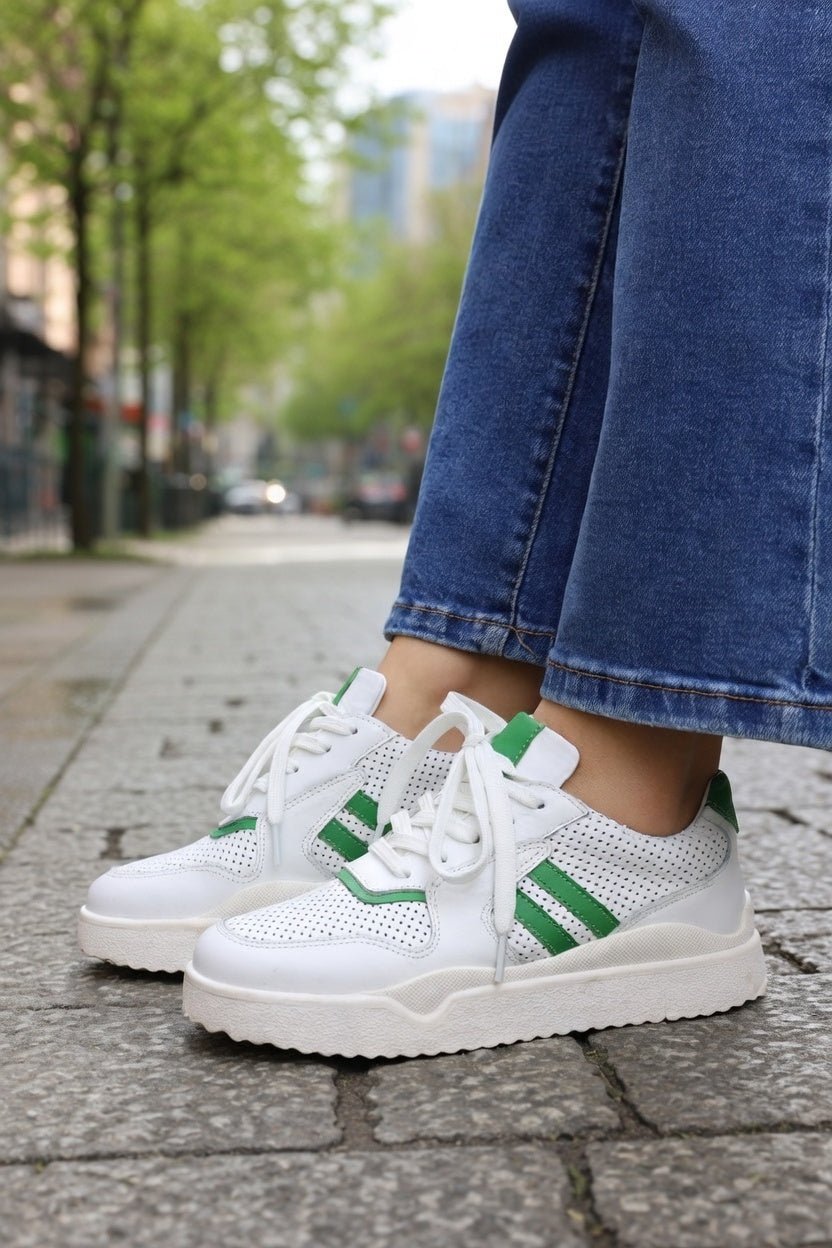 Sneakers din Piele Albi cu Verde - PESTY WHITEPantofi sport damaBigiottos Shoes
