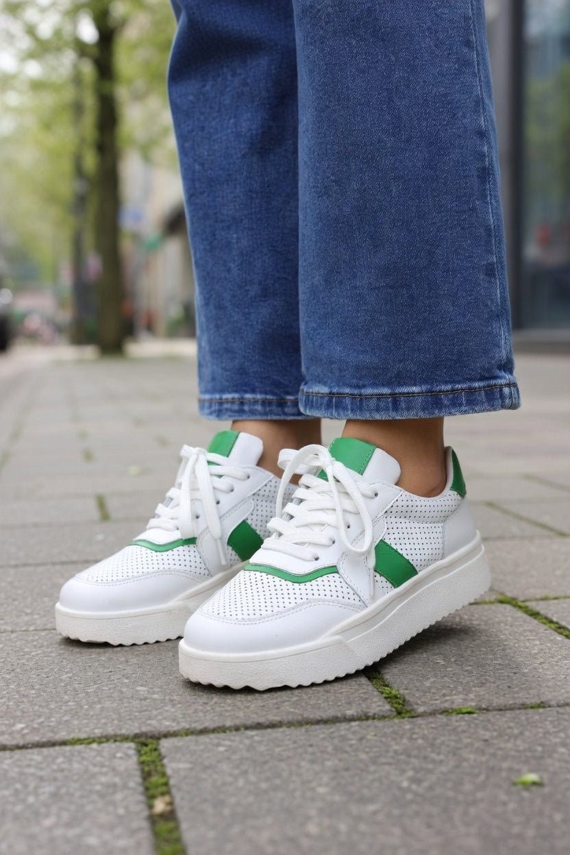 Sneakers din Piele Albi cu Verde - PESTY WHITE
