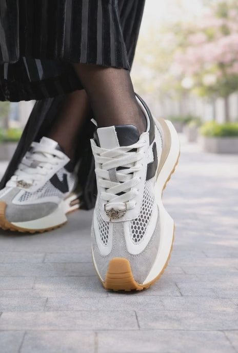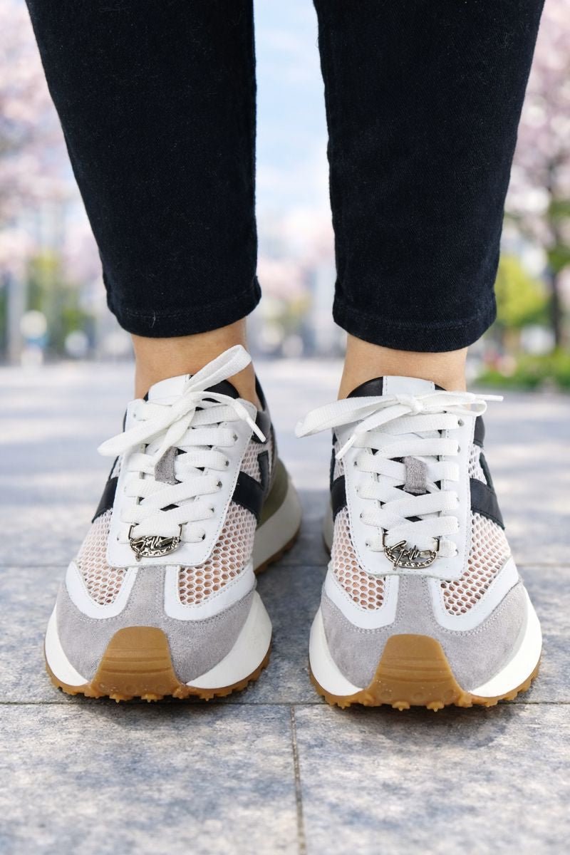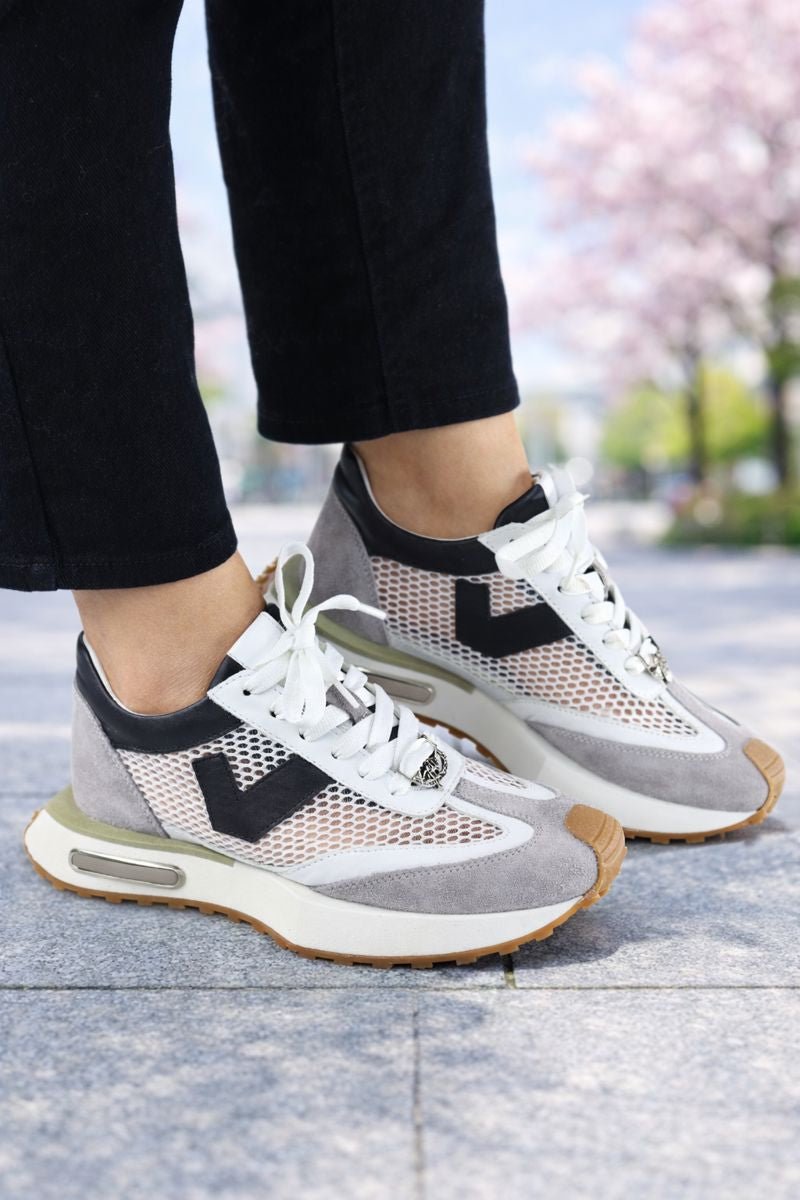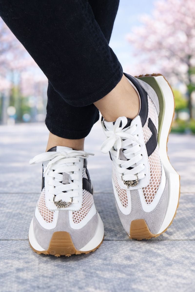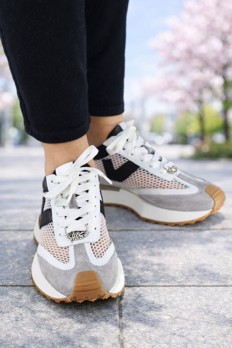 Sneakers din Piele cu Mesh Gri cu Alb - JO