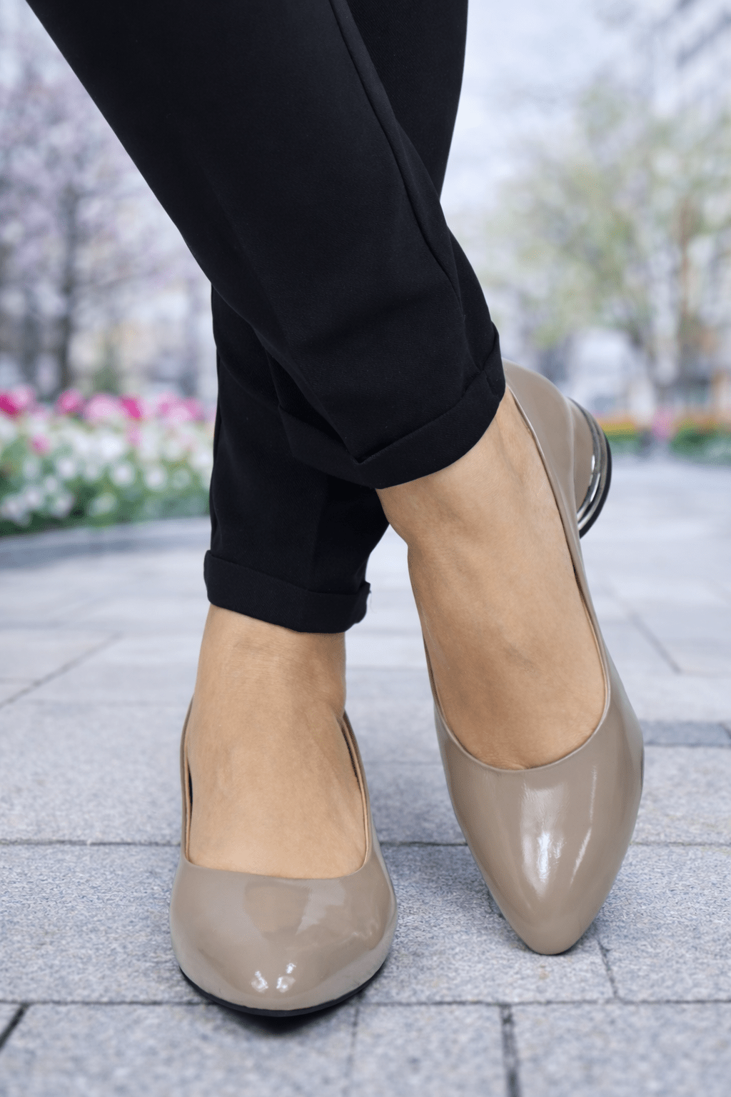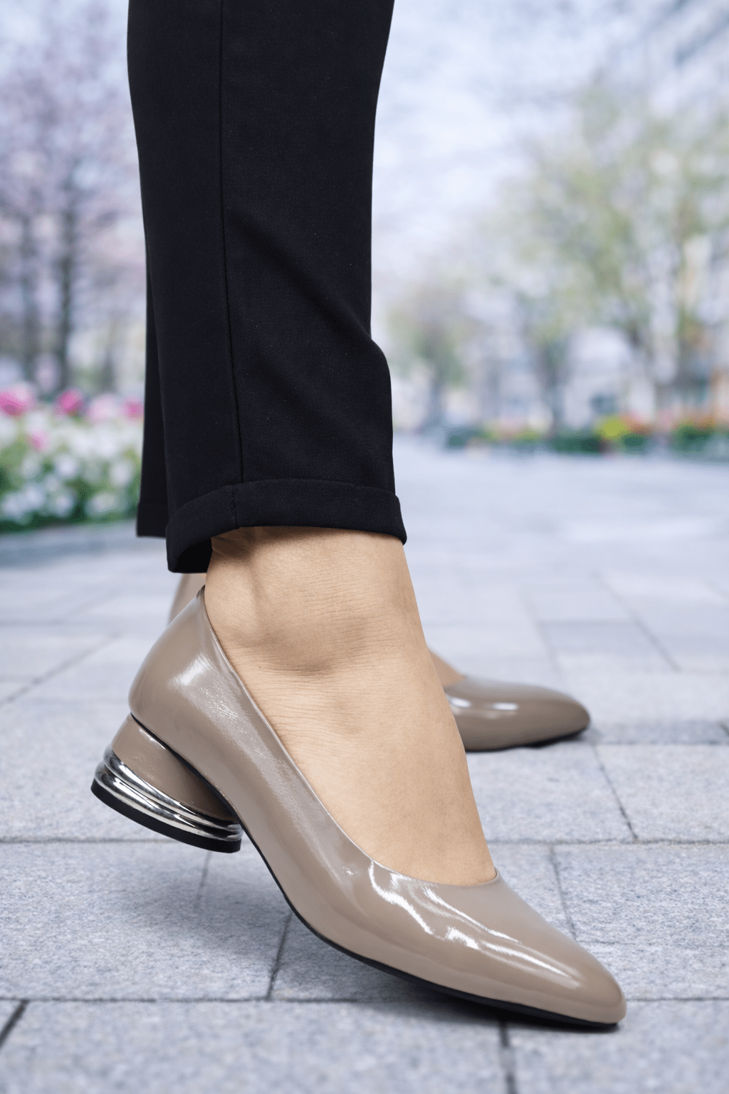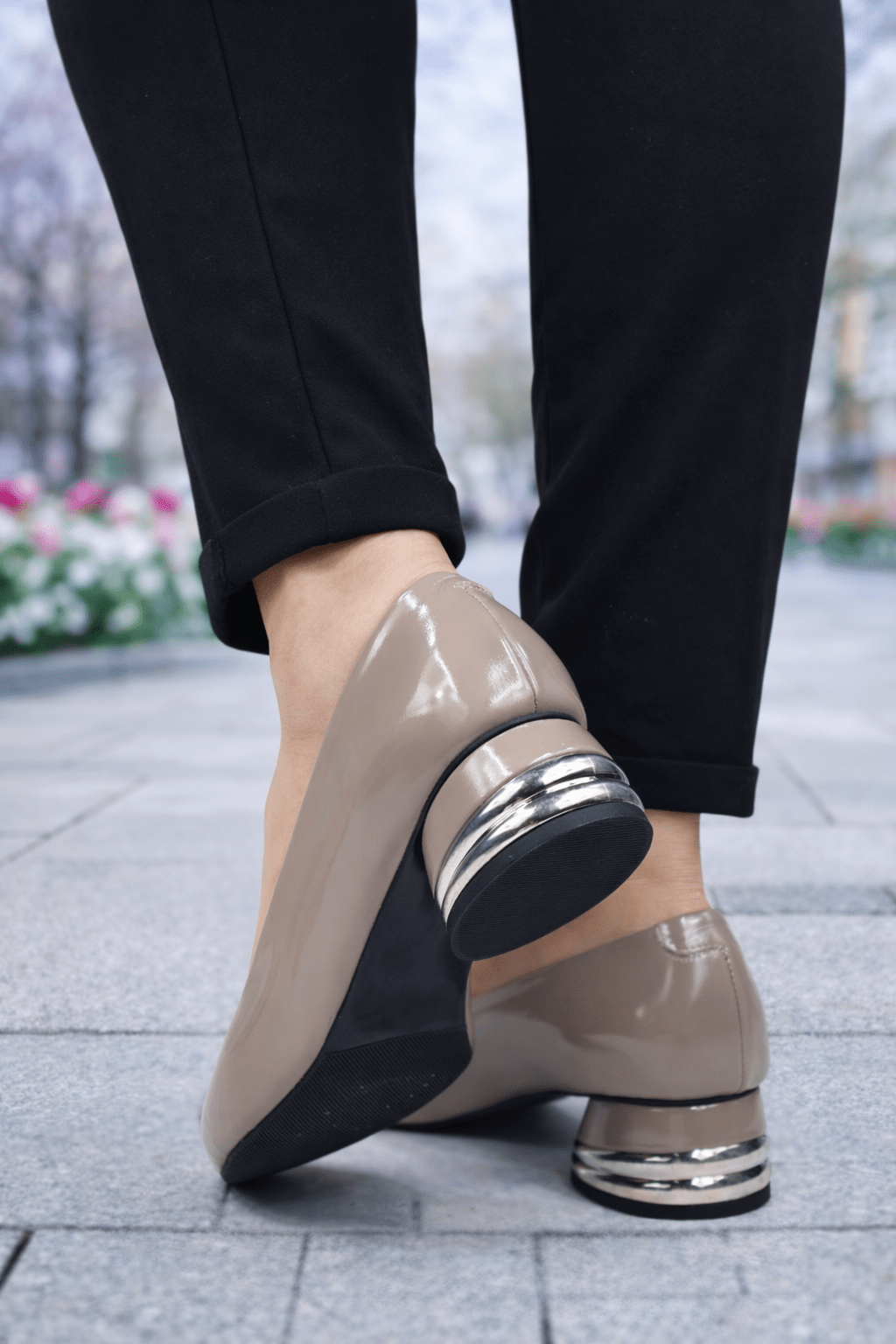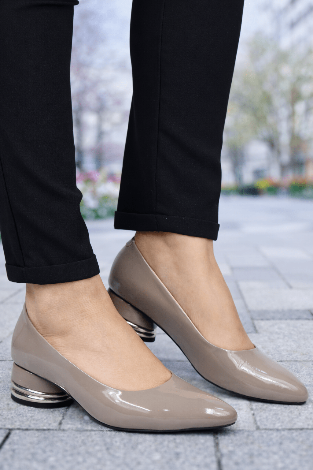 Pantofi Eleganti cu Toc Accesorizat din Piele Lacuita - VYA TAUPEELBigiottos Shoes