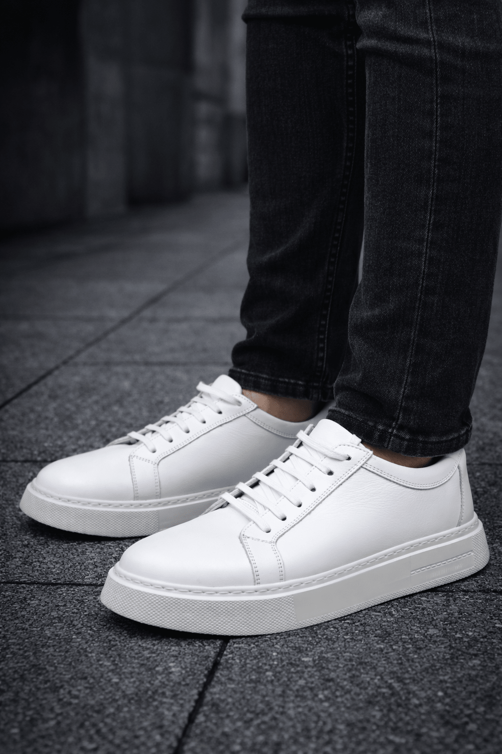 Linia minimalistă, fără elemente încărcate, pune accent pe proporții echilibrate și finisaje premium. Pielea netedă, cusăturile discrete și talpa albă compactă creează un look modern, ușor de integrat în garderoba zilnică.