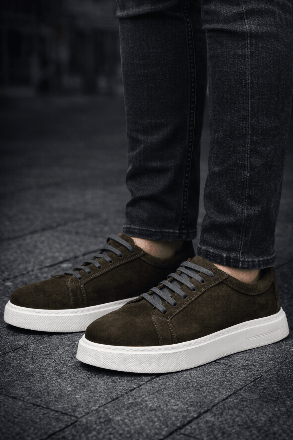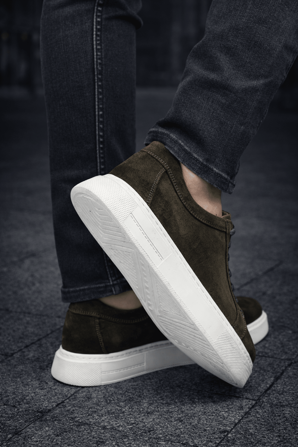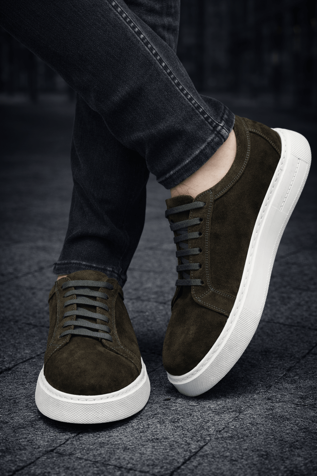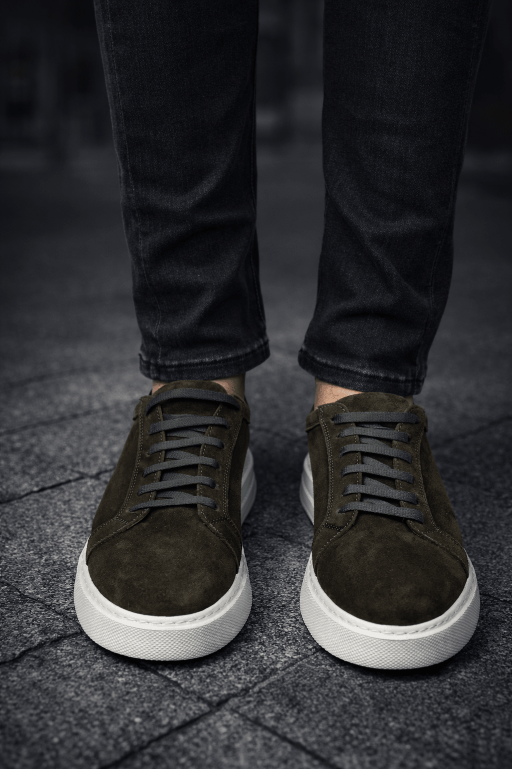 Sneakers-ii verzi din piele naturală intoarsa (velur) semnați Bigiottos sunt definiția stilului curat și versatil.