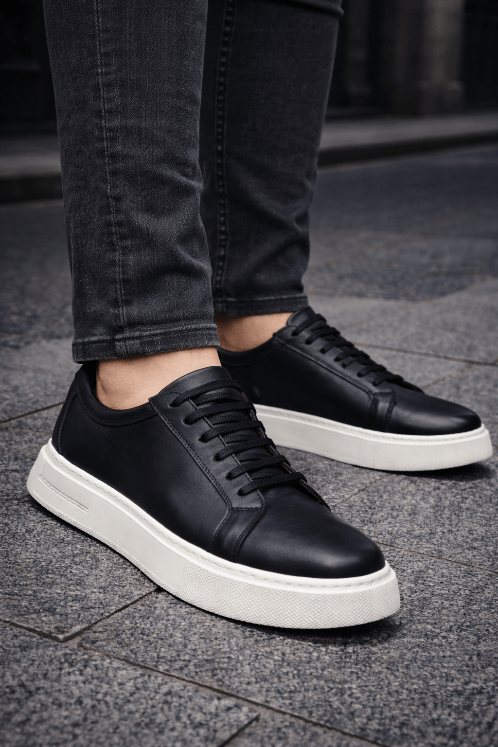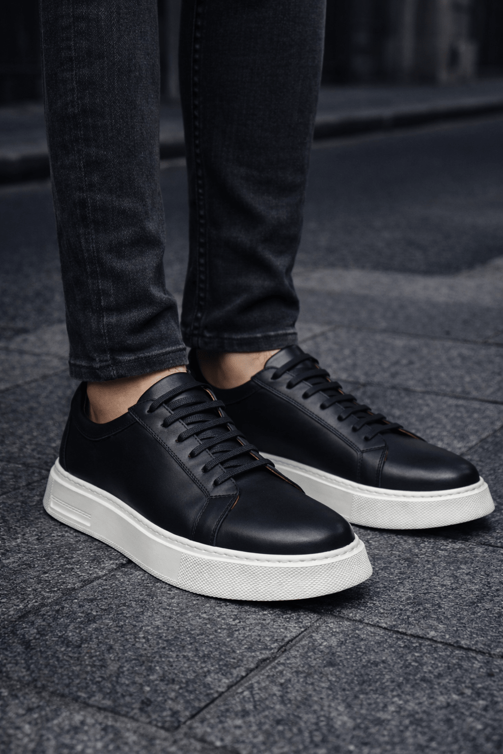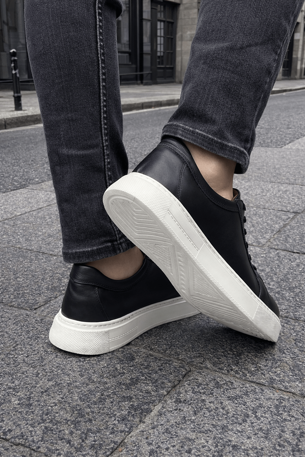 Linia minimalistă, fără elemente încărcate, pune accent pe proporții echilibrate și finisaje premium. Pielea netedă, cusăturile discrete și talpa albă compactă creează un look modern, ușor de integrat în garderoba zilnică.