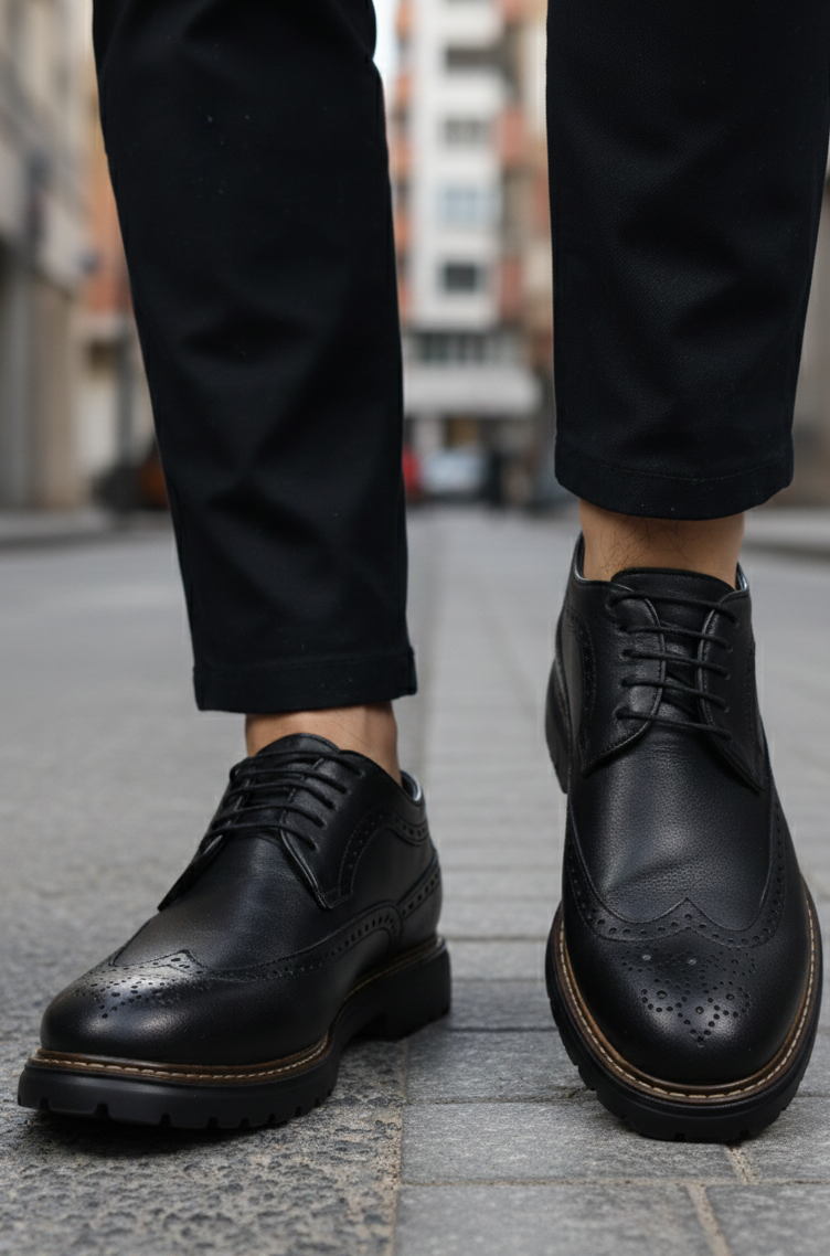 Alege un stil clasic, atemporal, cu pantofii eleganți Bigiottos din piele naturală neagră, creați pentru bărbații care apreciază rafinamentul și calitatea. Modelul se remarcă prin perforațiile decorative tip brogue, ce oferă un aer sofisticat și distins.