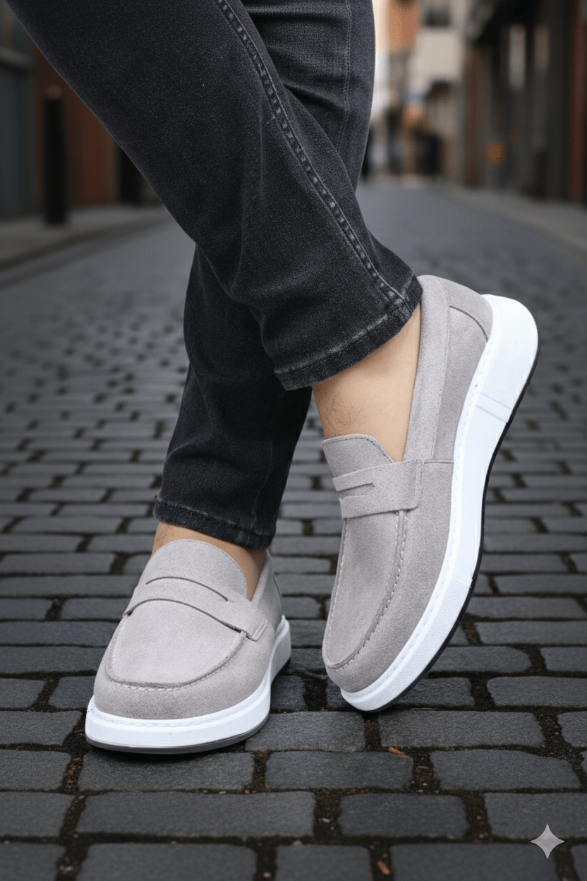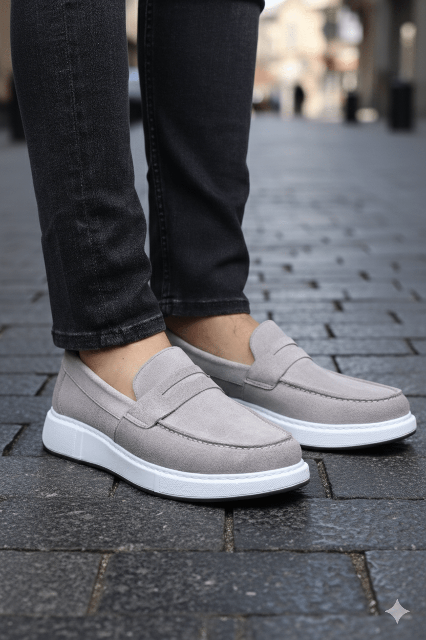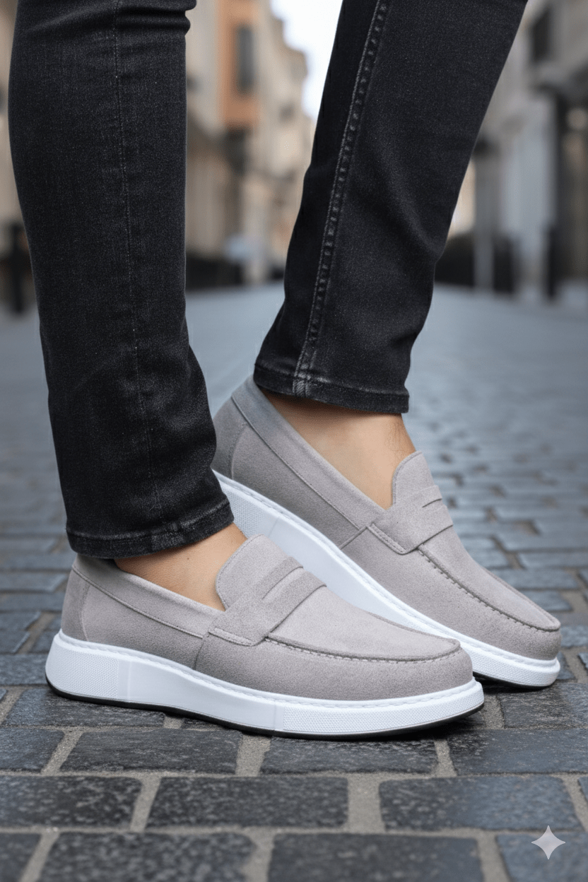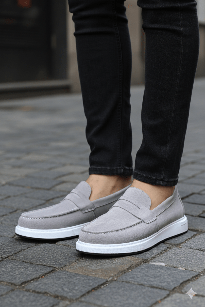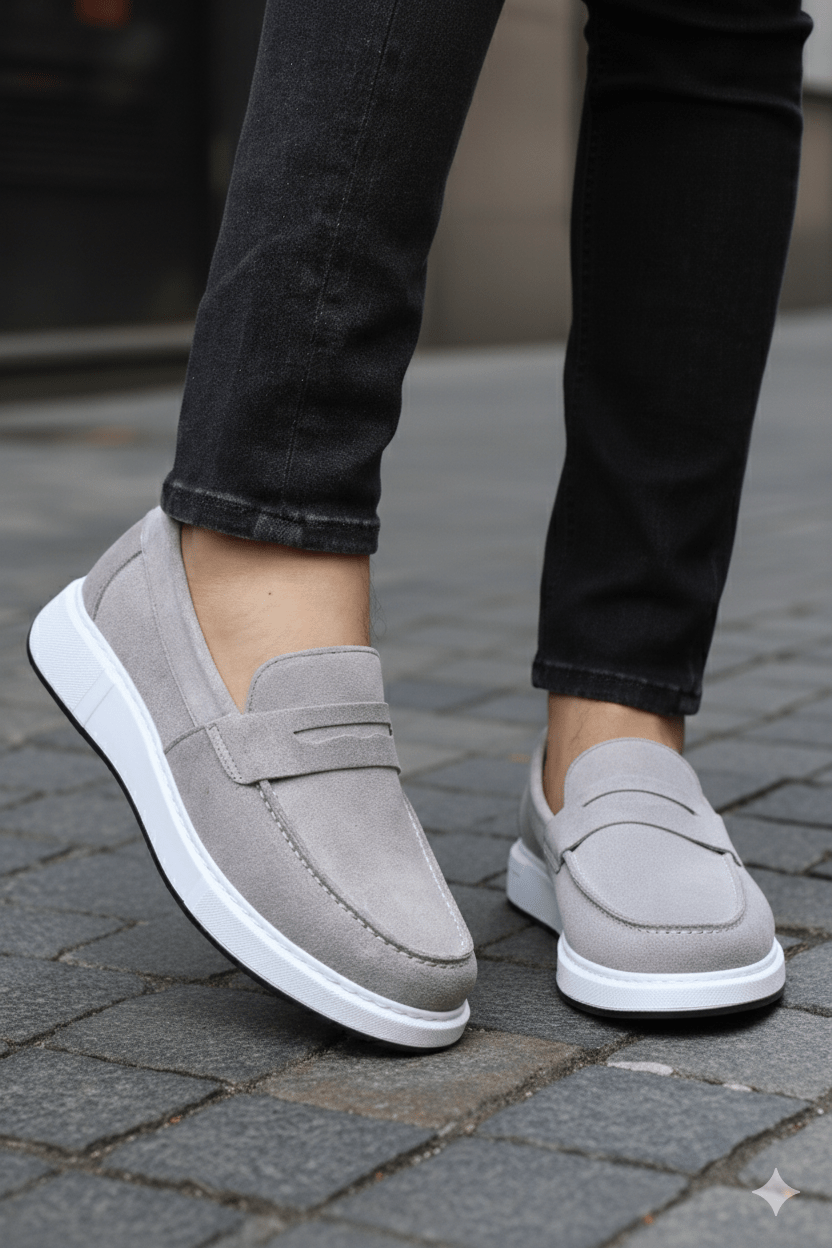 Mocasinii gen Sneakers gri din piele naturală intoarsa (velur) semnați Bigiottos sunt definiția stilului curat și versatil.