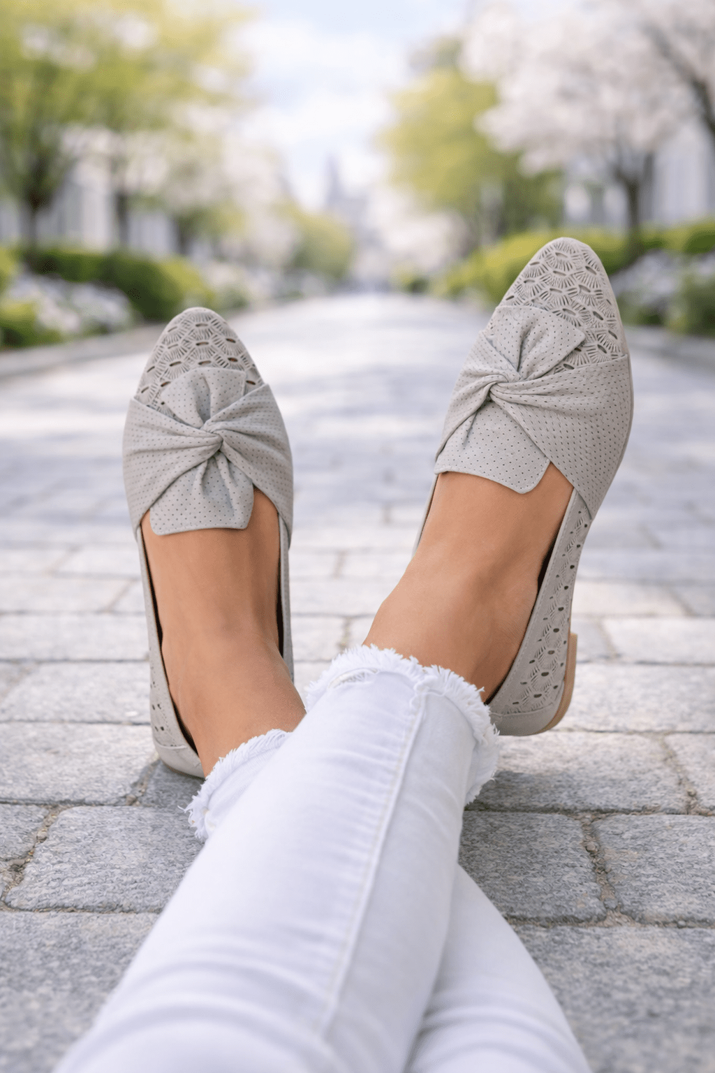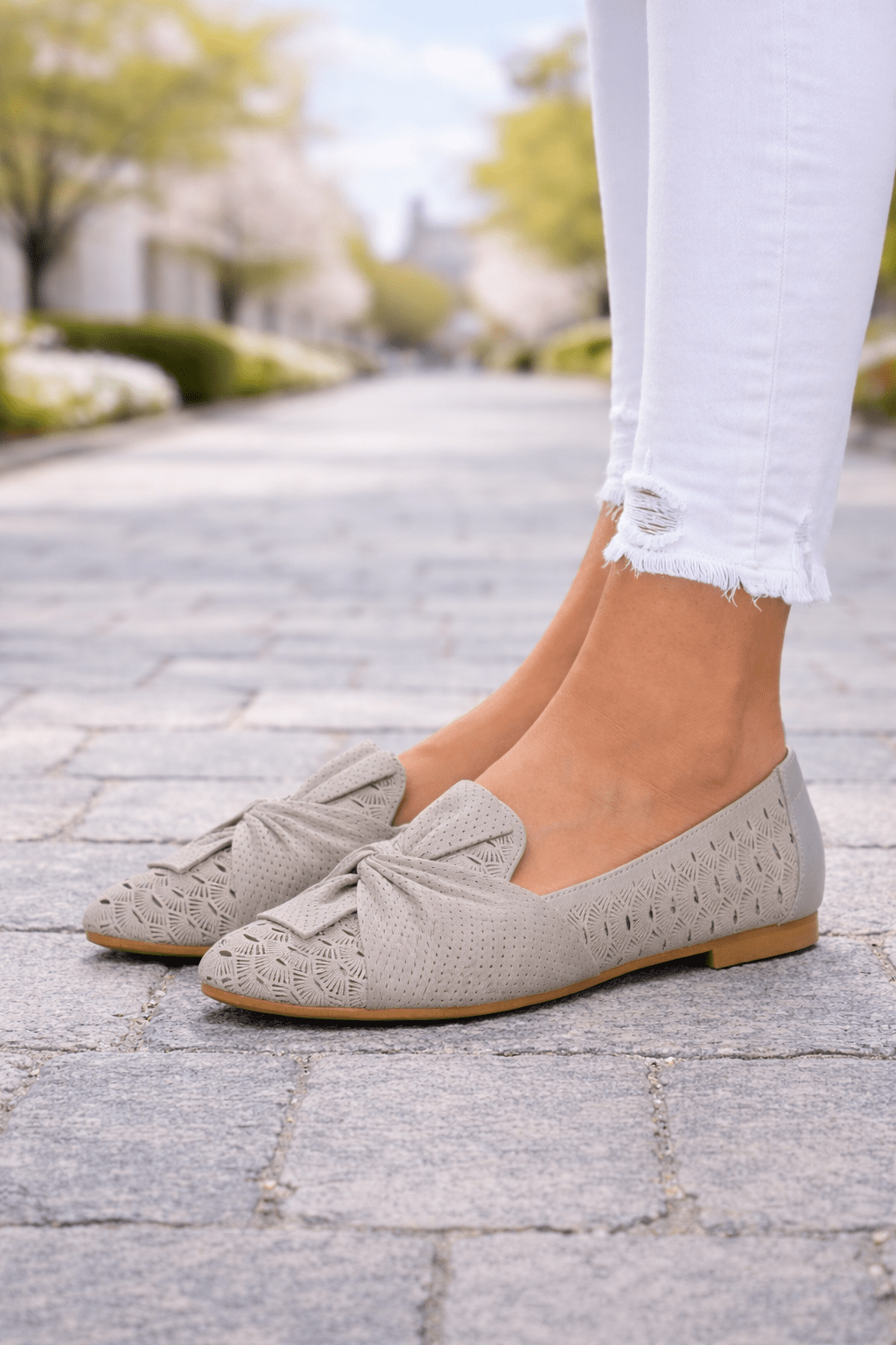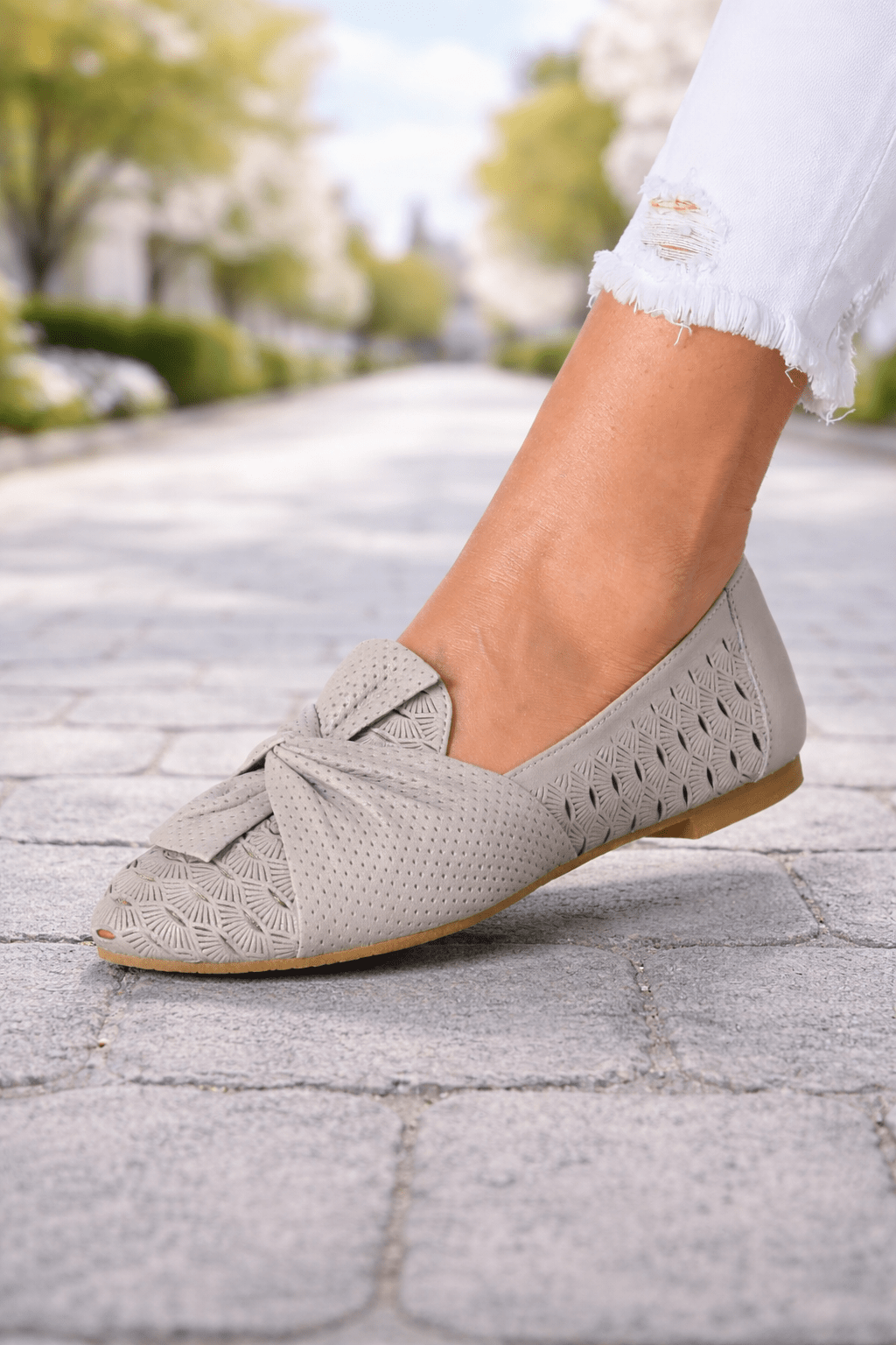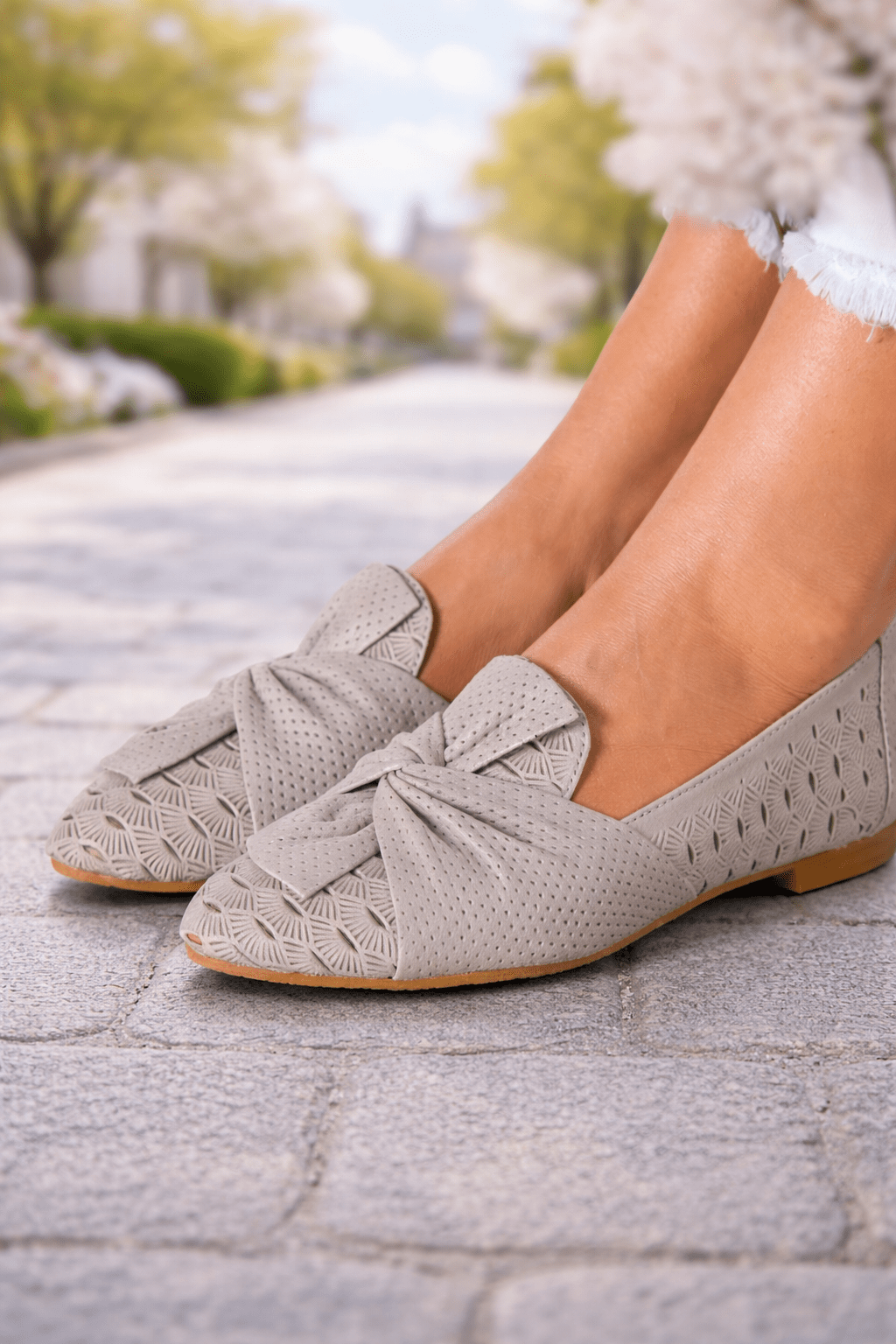 Balerini Decupati din Piele Gri cu Fundita - ZYO GREY