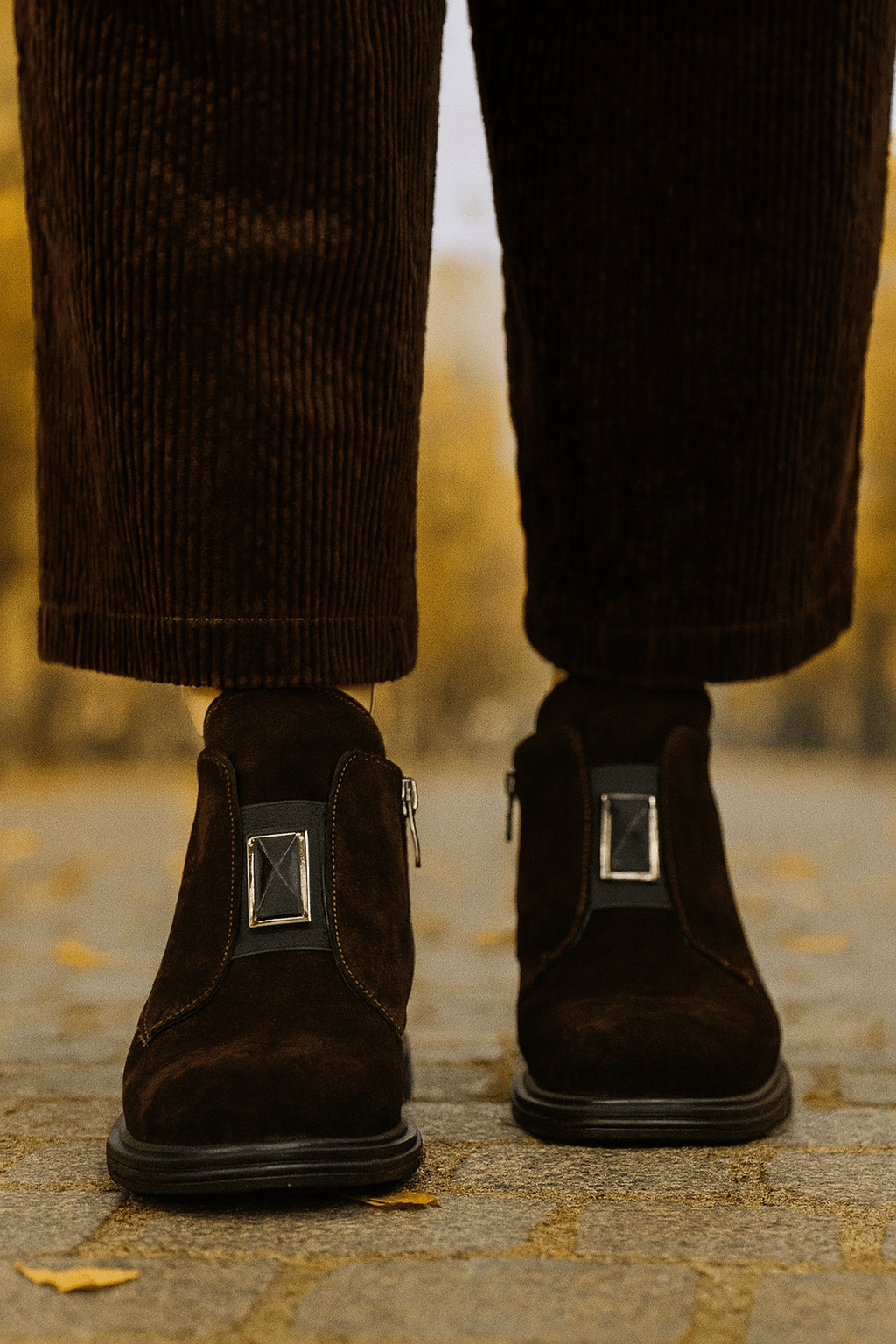 Ghete Casual Dama din Piele Intoarsa Maro cu Accesoriu - FENY