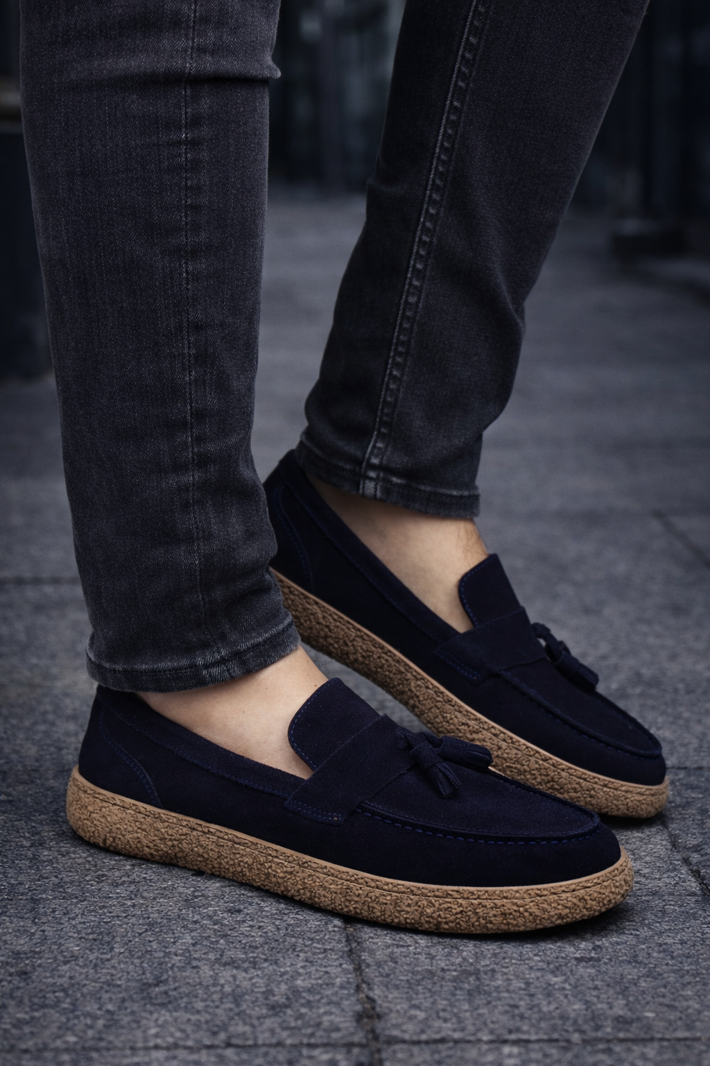 Mocasini din Piele Intoarsa Albastri cu Accesoriu - OVY BLU
