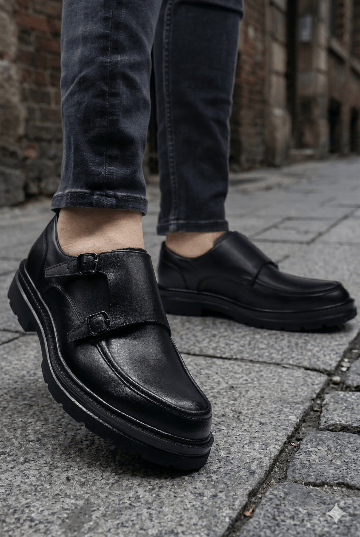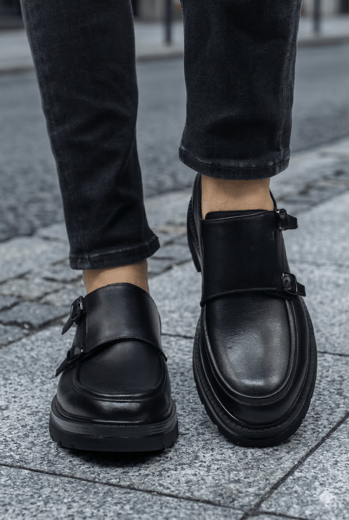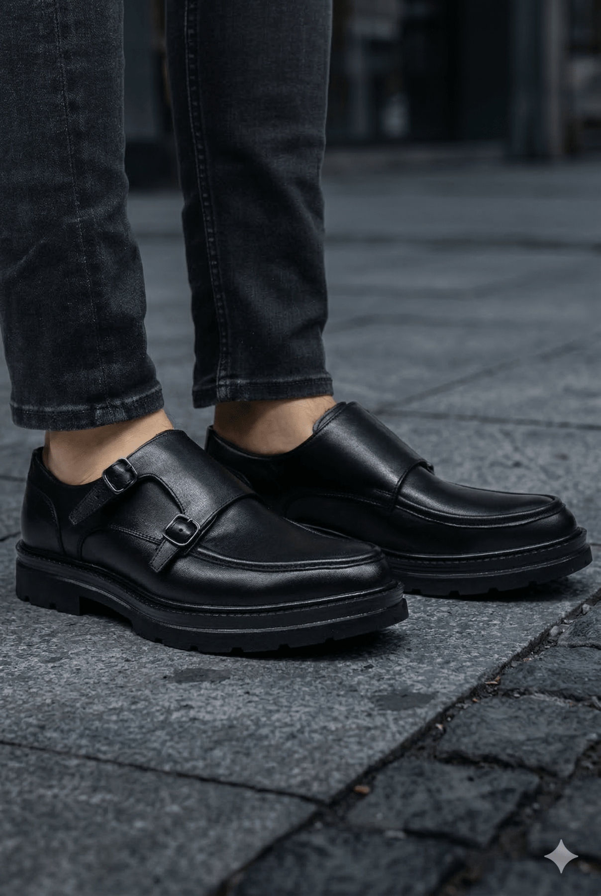 Echilibrul perfect între rebeliune urbană și eleganță clasică. Acești pantofi Double Monk Strap impresionează prin finisajul lor satinat și cusătura frontală tip Moc-Toe, care le oferă o siluetă modernă și robustă.