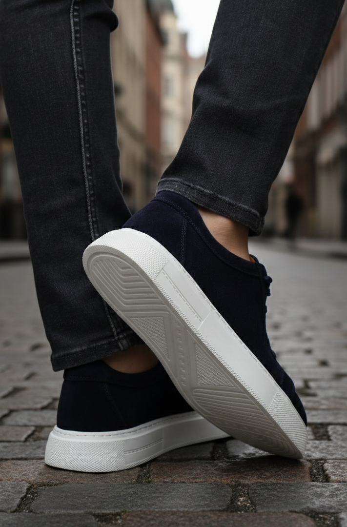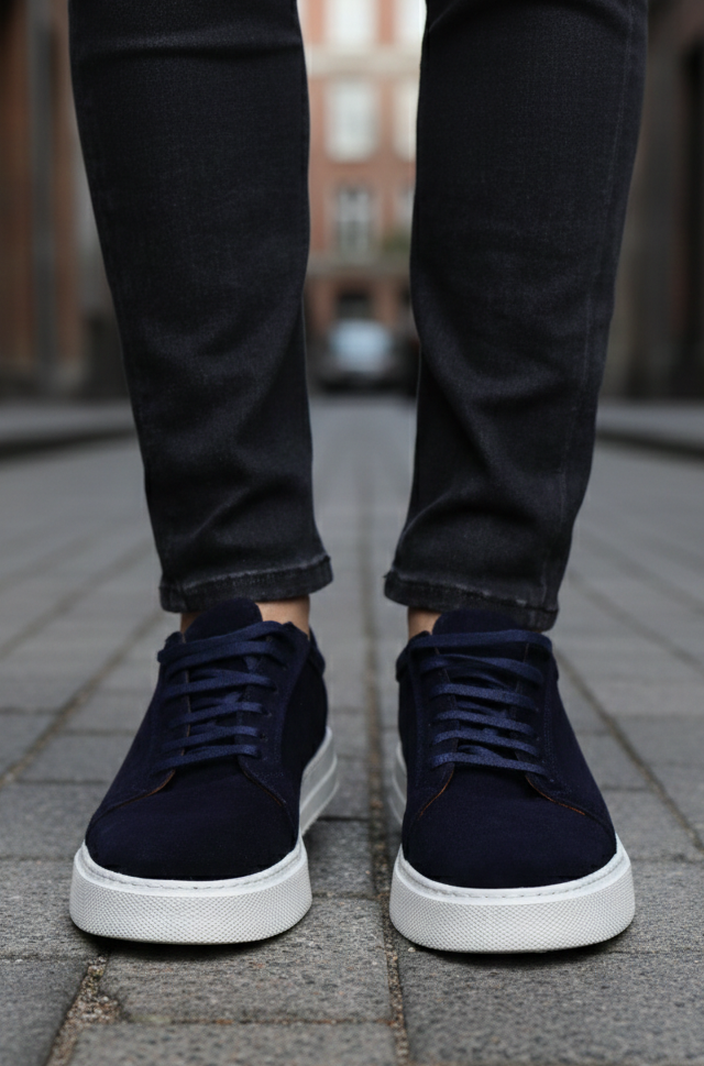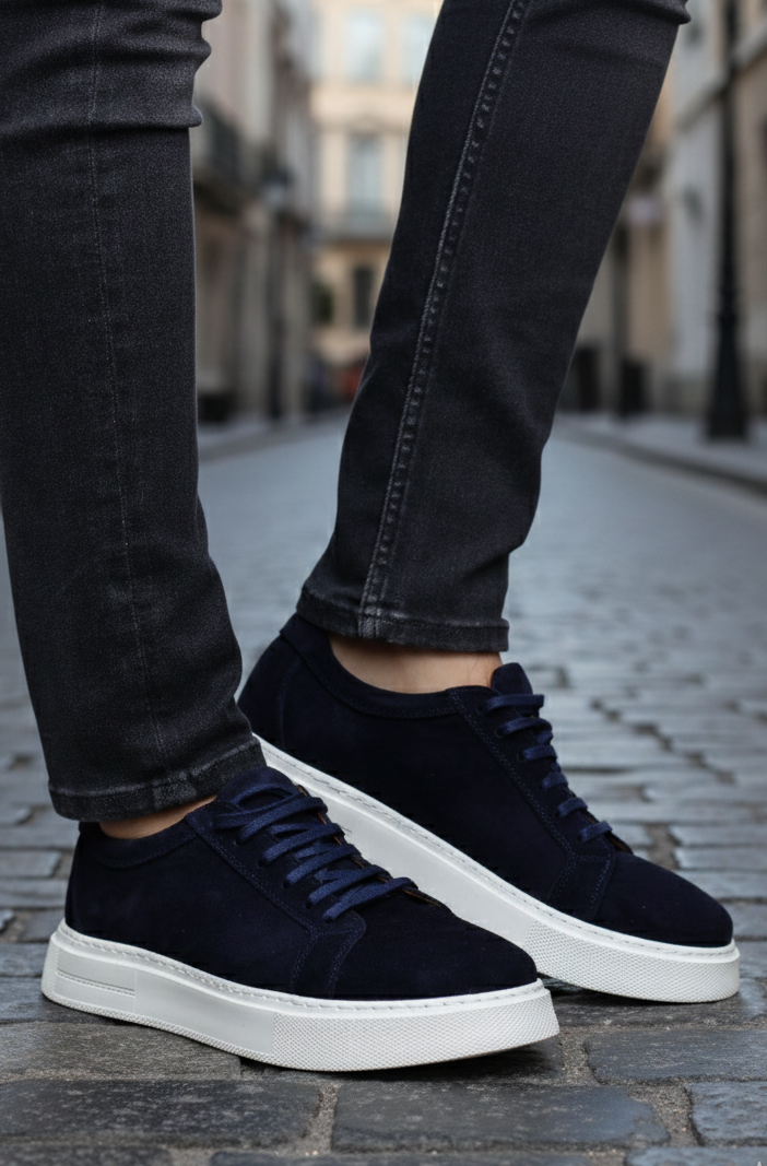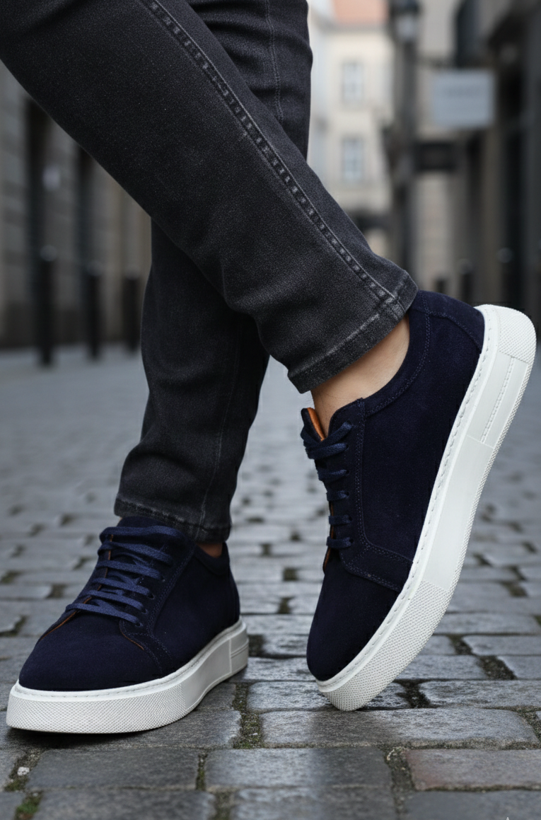 Sneakers-ii bleumarin din piele naturală intoarsa (velur) semnați Bigiottos sunt definiția stilului curat și versatil.