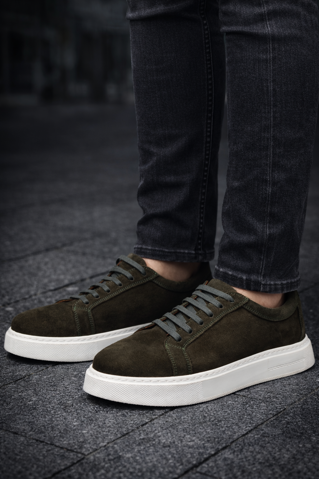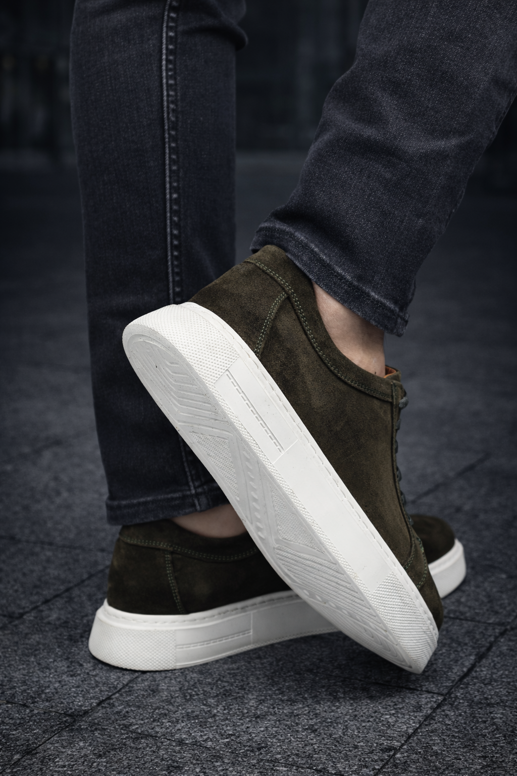 Sneakers-ii verzi din piele naturală intoarsa (velur) semnați Bigiottos sunt definiția stilului curat și versatil.