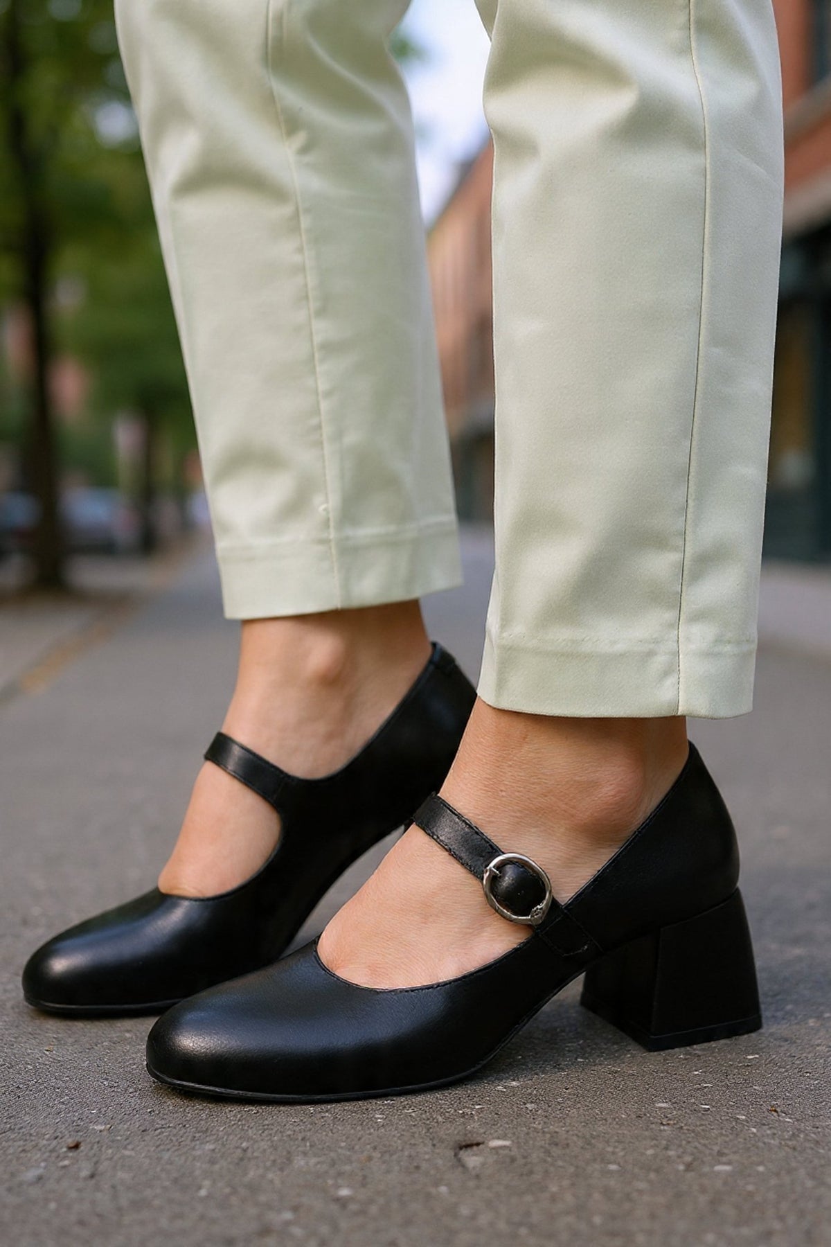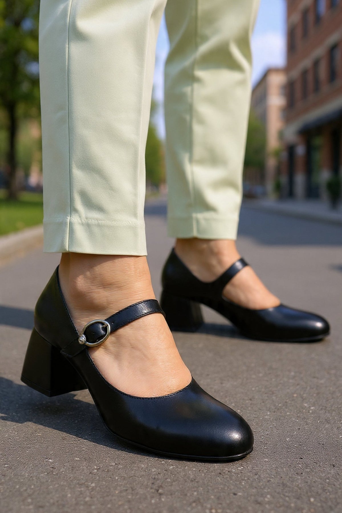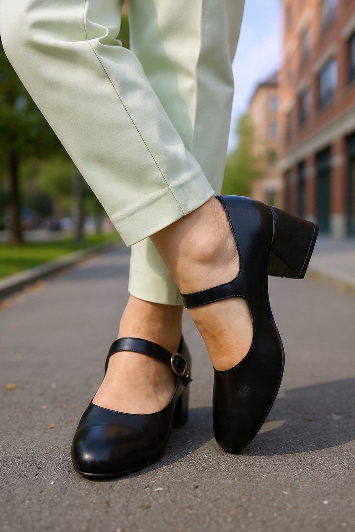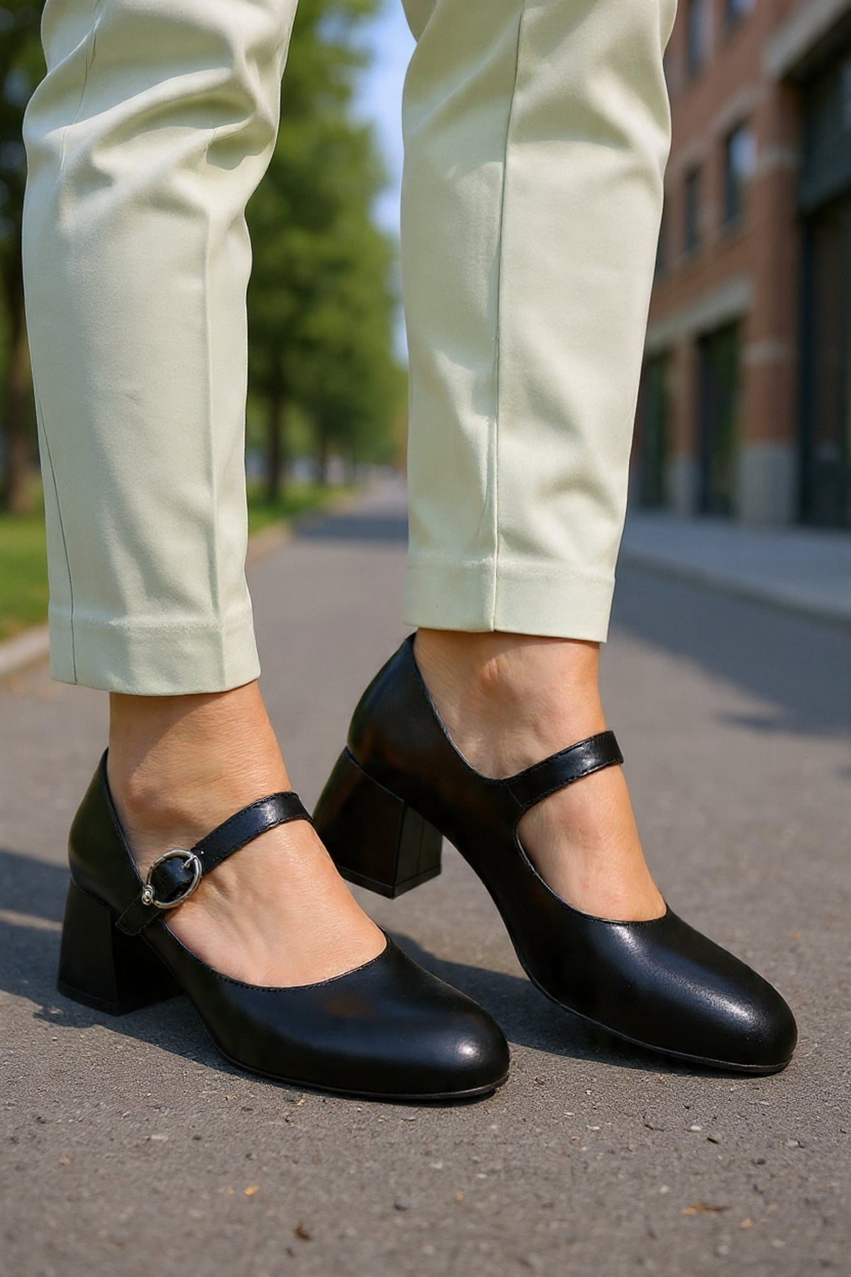 Pantofi Eleganti cu Bareta din Piele Neagra - BYV BLACK