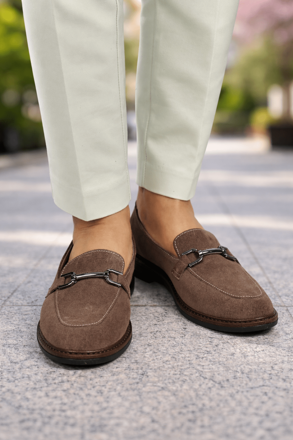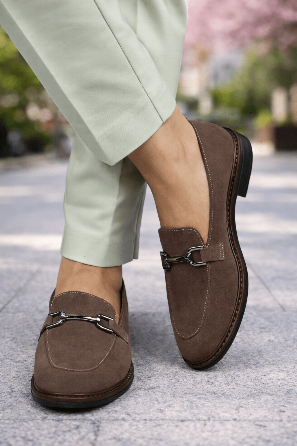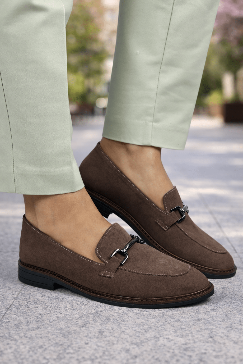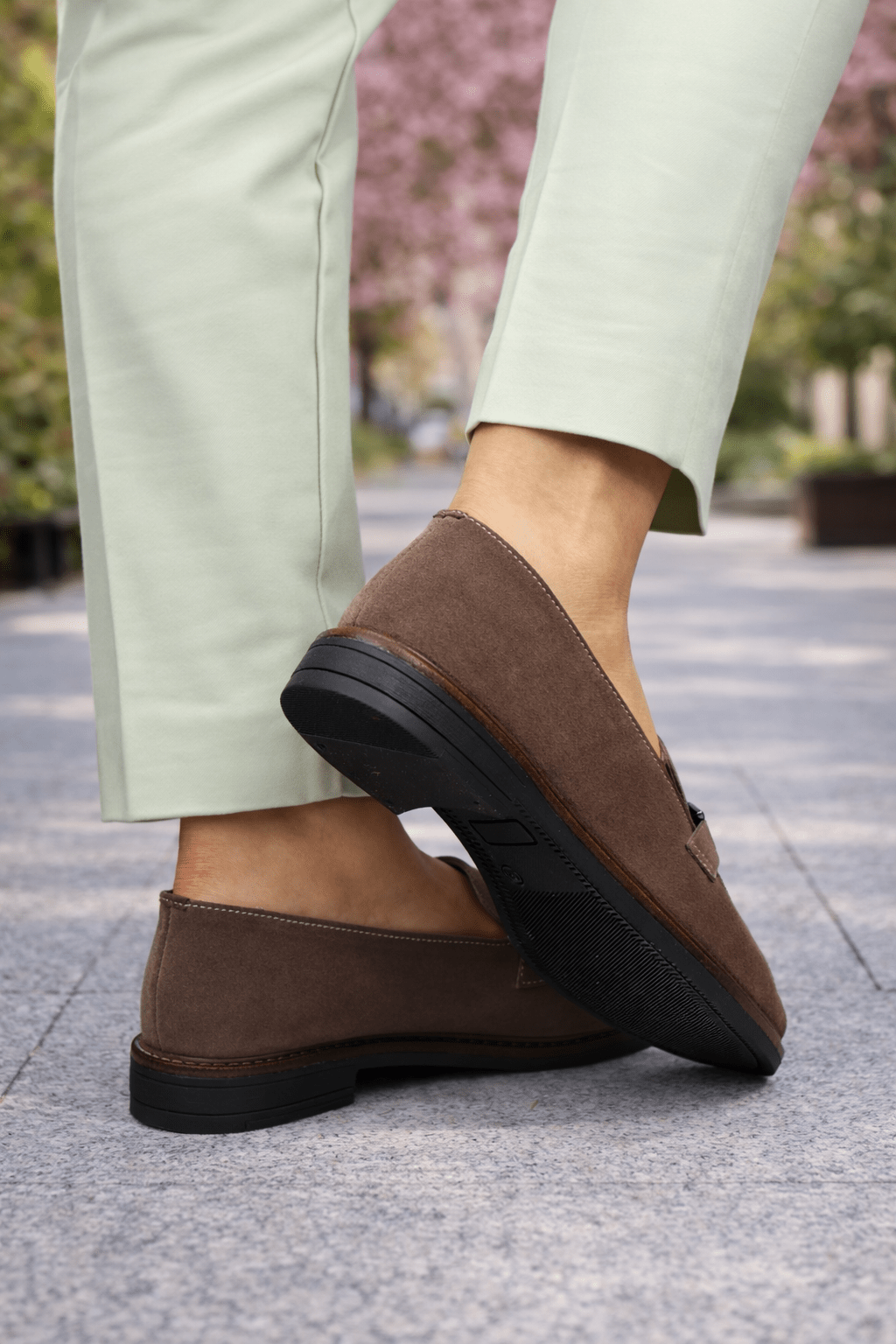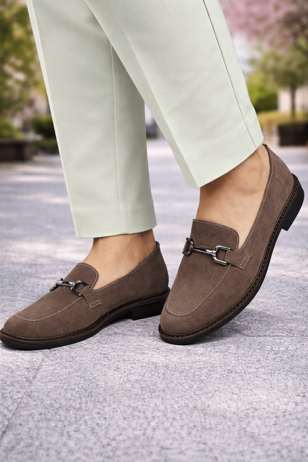 Pantofi gen Loafers din Piele Intoarsa cu Accesoriu - LORE TAUPE