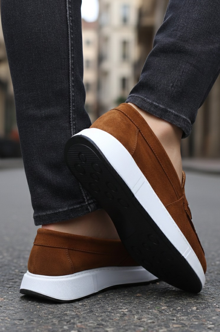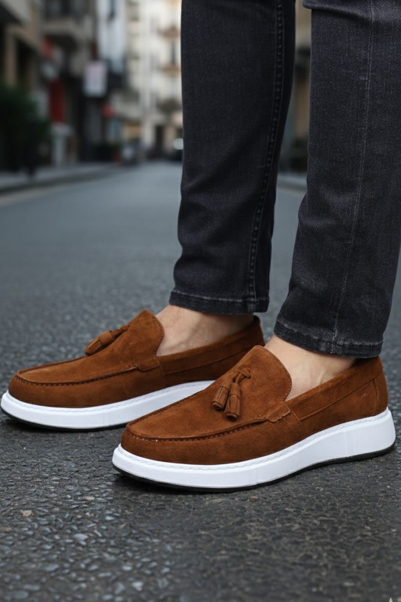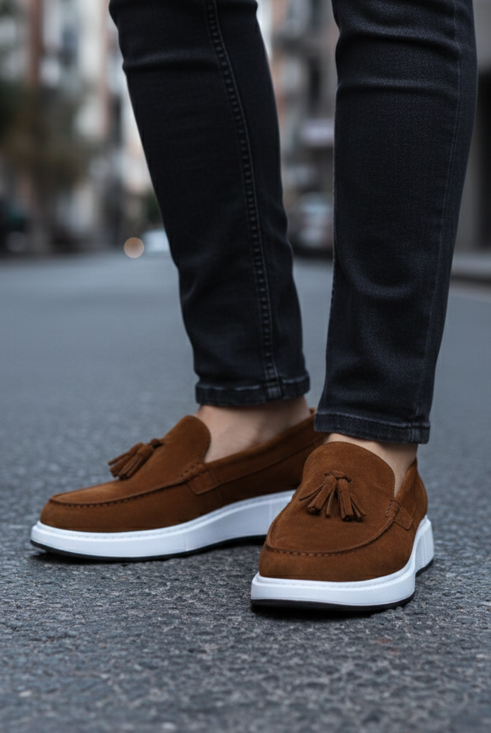 Realizați din piele întoarsă premium, cu textură naturală și aspect cald, acești mocasini aduc un echilibru perfect între eleganță și relaxare. Detaliul cu ciucuri păstrează linia clasică a modelului, în timp ce talpa albă modernă oferă un contrast actual și un plus de confort.