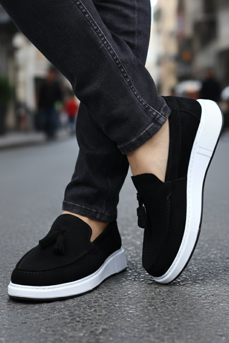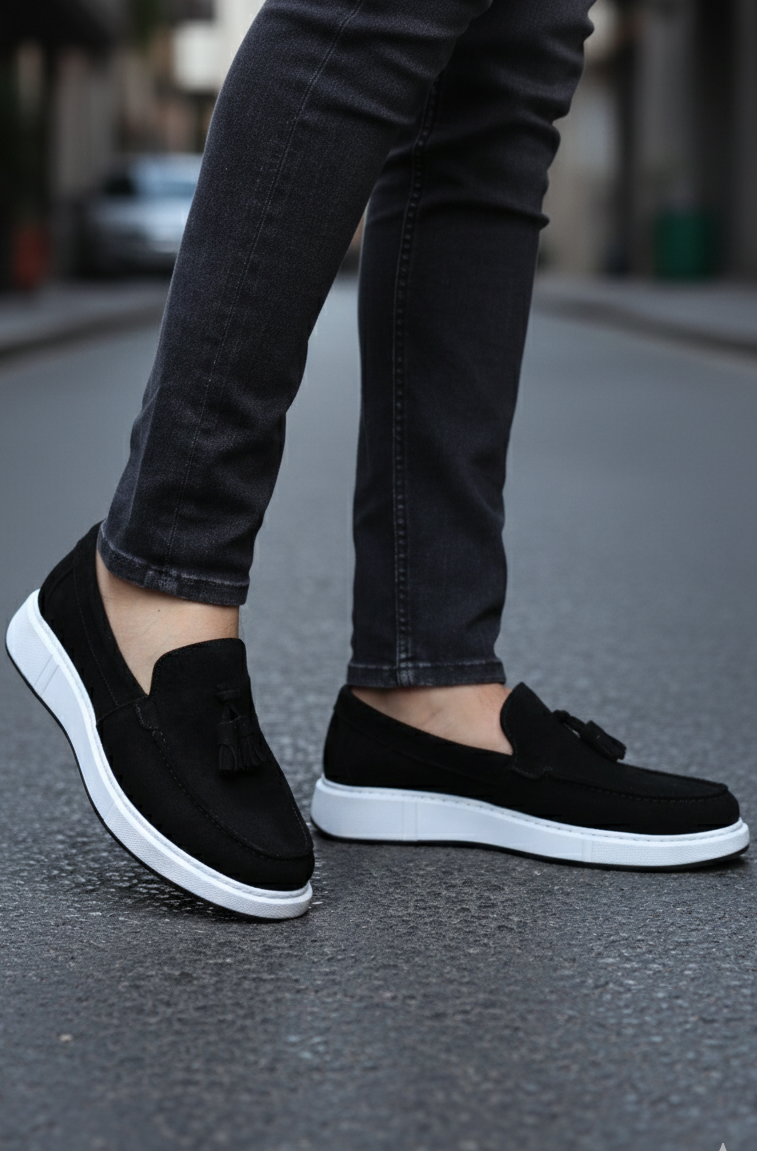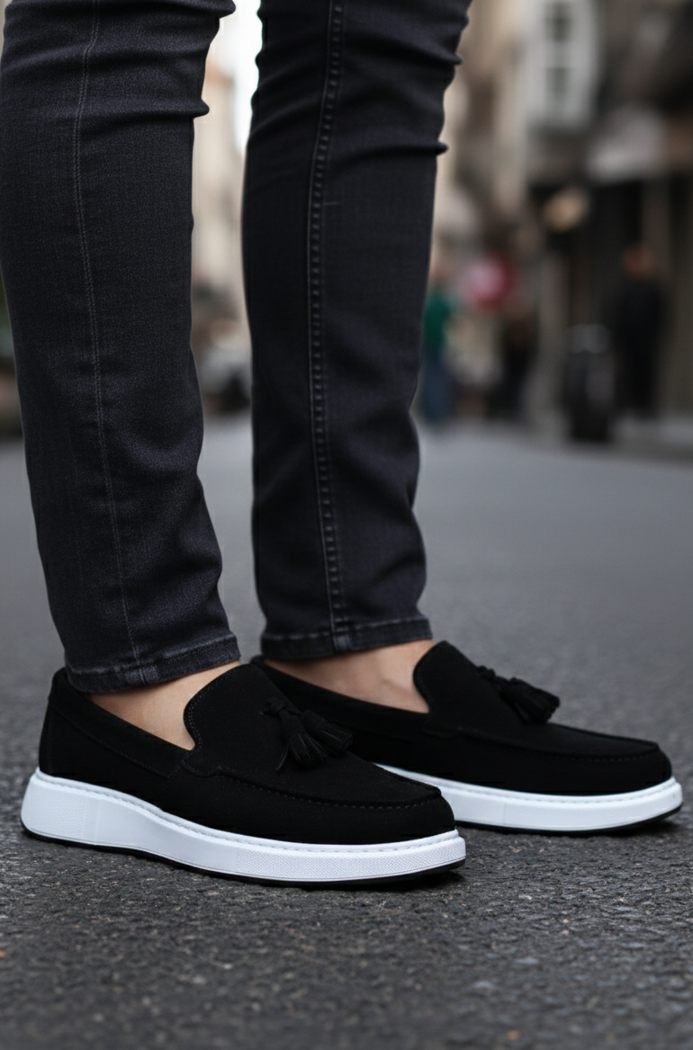 Realizați din piele întoarsă premium, cu textură naturală și aspect cald, acești mocasini aduc un echilibru perfect între eleganță și relaxare. Detaliul cu ciucuri păstrează linia clasică a modelului, în timp ce talpa albă modernă oferă un contrast actual și un plus de confort.
