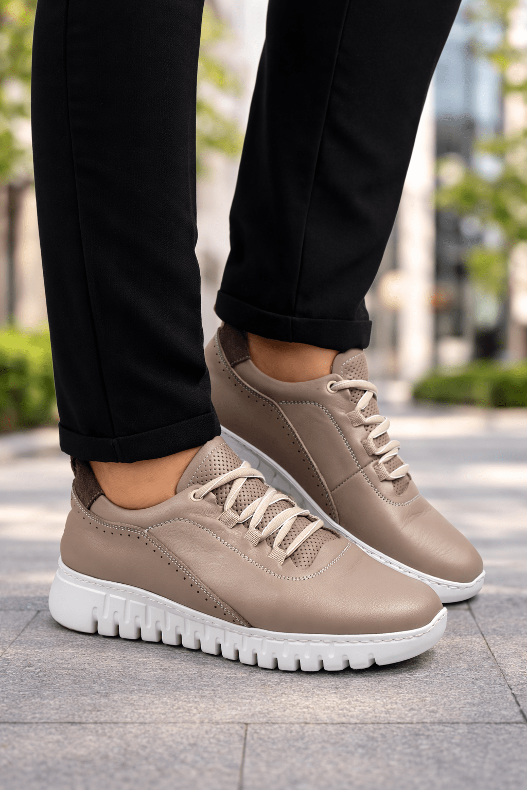 Pantofi Sport-Casual Din Piele Gri - SPEA TAUPE