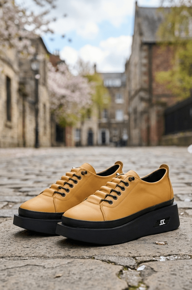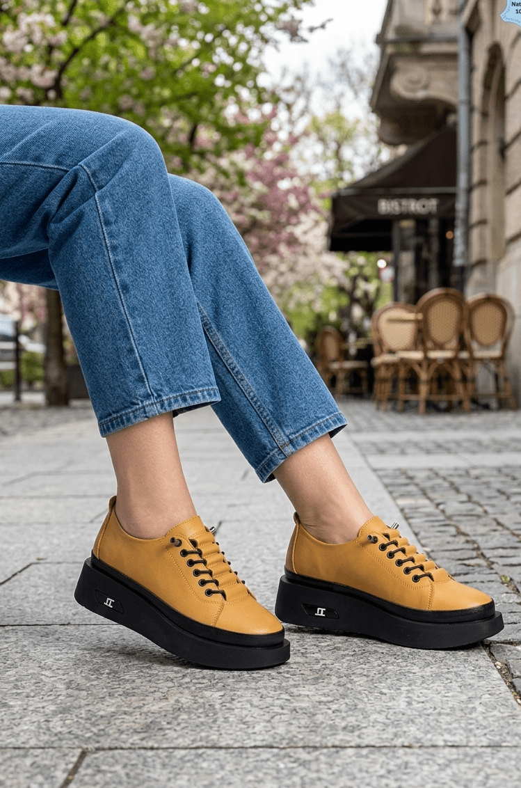 Pantofi Sport din Piele cu Siret Elastic - ELYN YELLOW