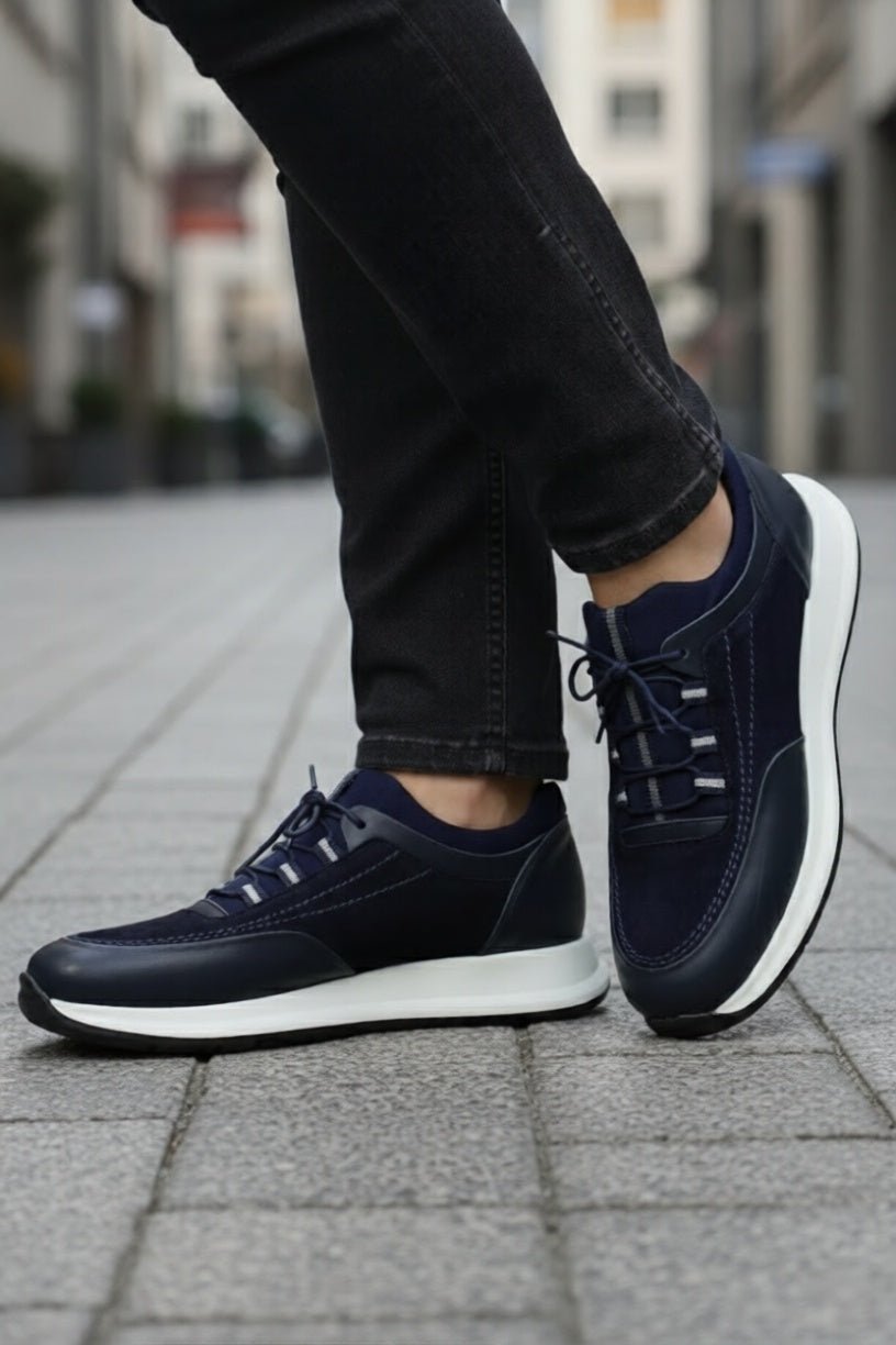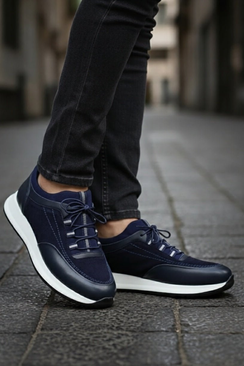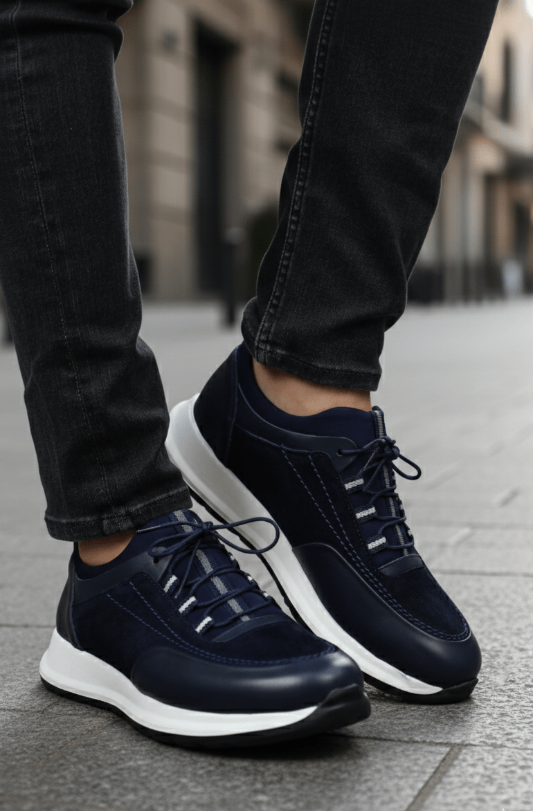 Sneakers din Piele Albastri cu Strech - DAVY BLUPantofi sport barbatiBigiottos Shoes