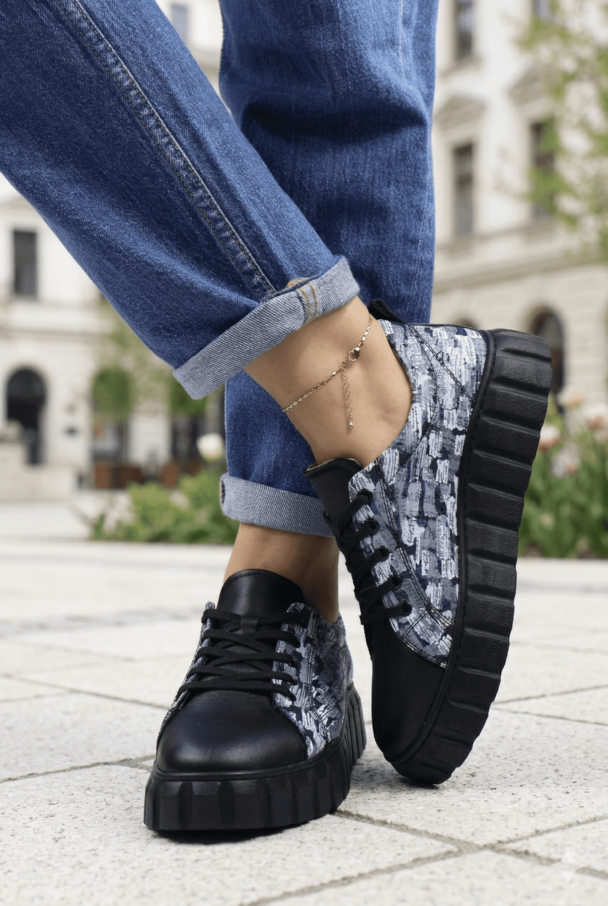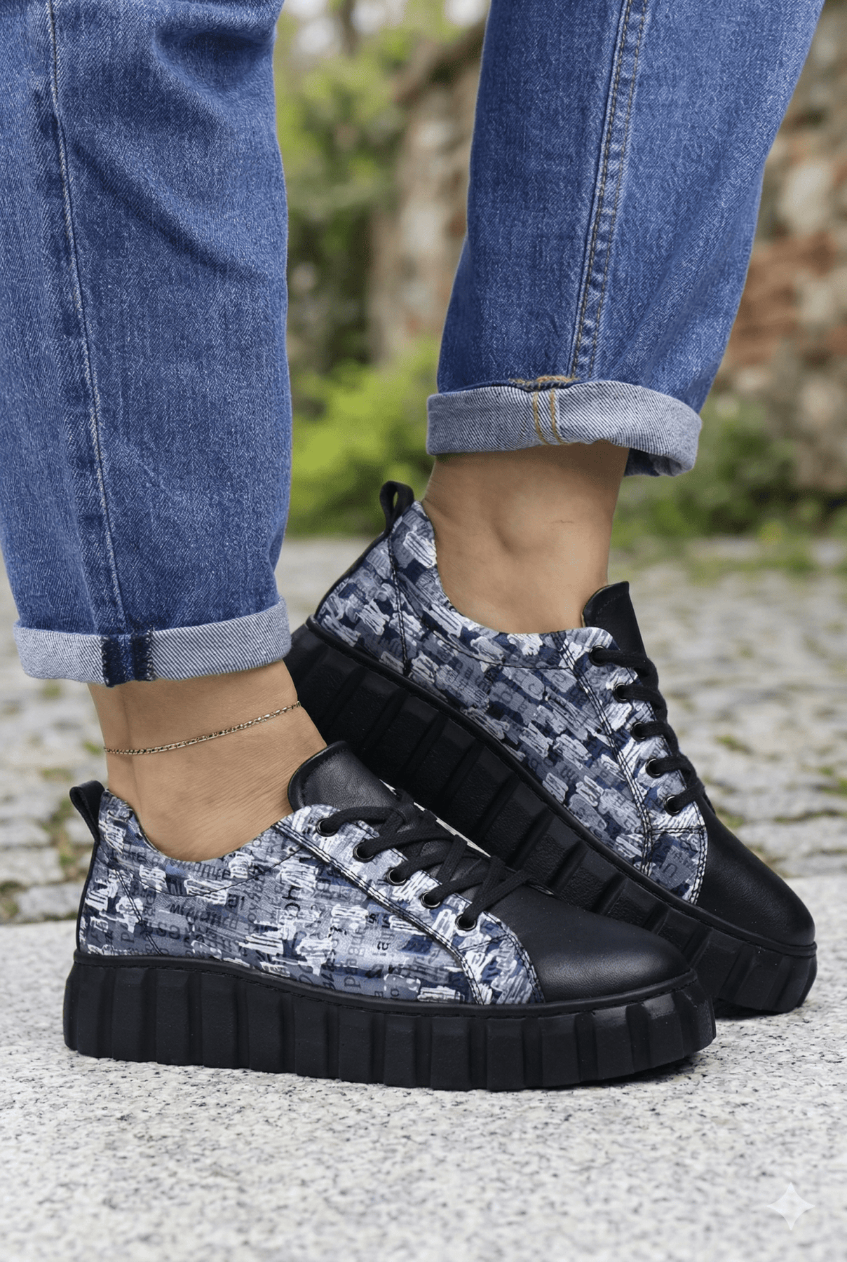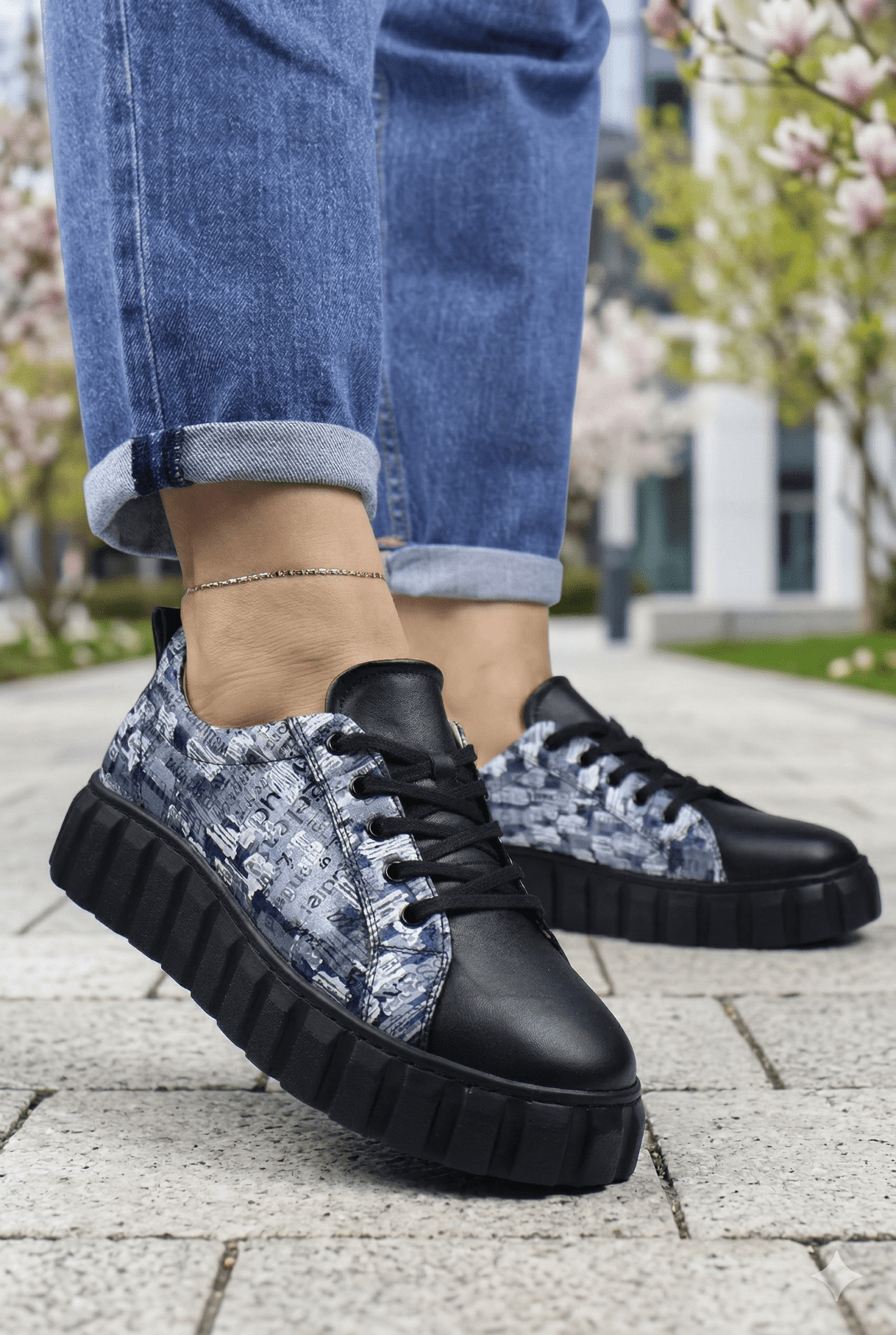 Sneakers din Piele cu Print si Siret - TORE BLACK TWOPantofi sport damaBigiottos Shoes
