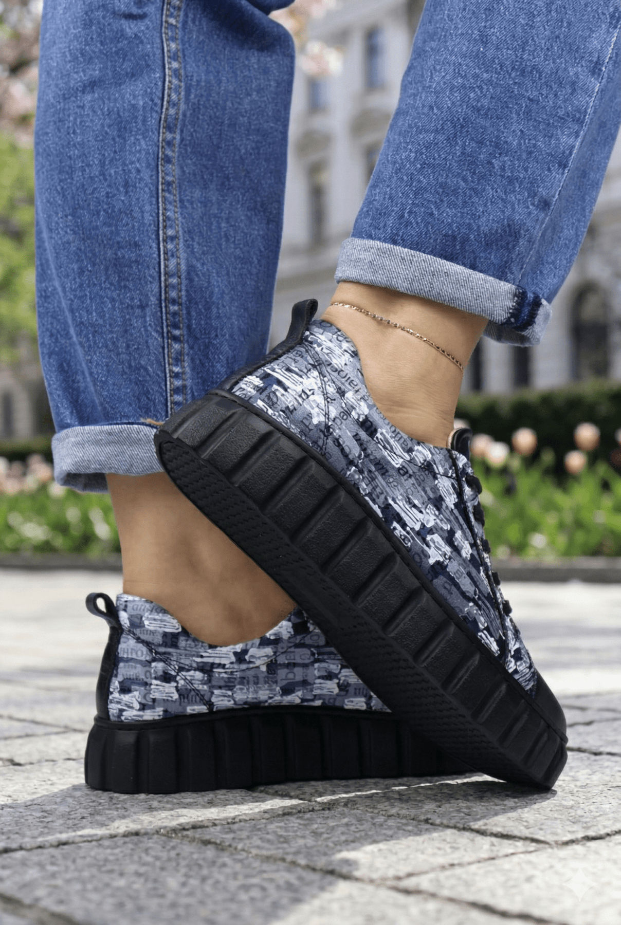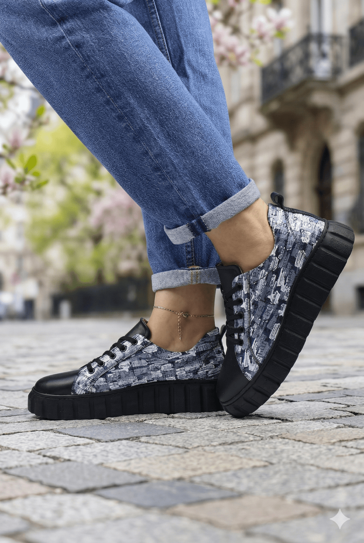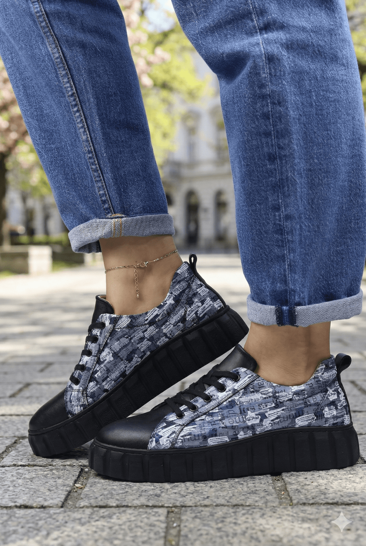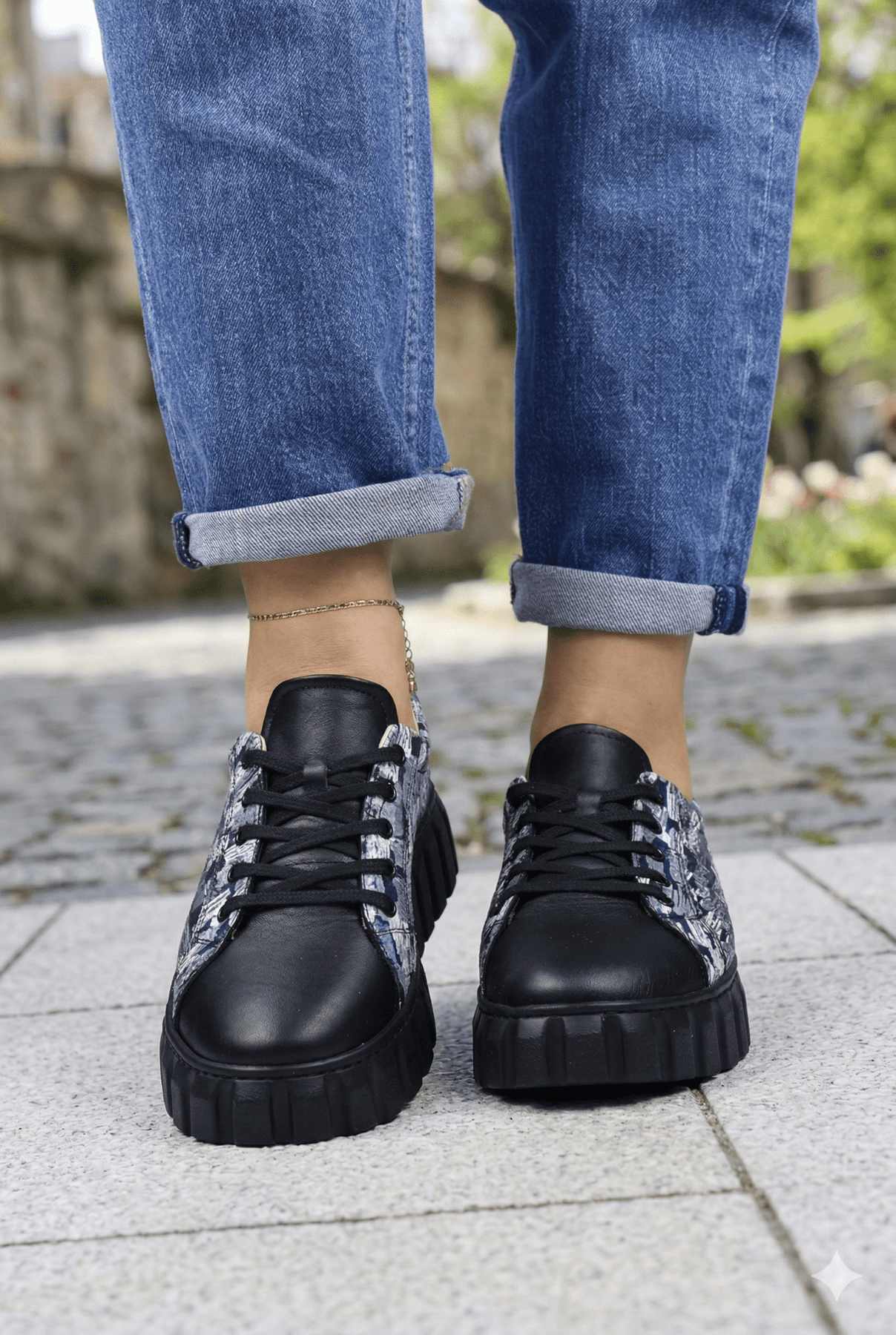 Sneakers din Piele cu Print si Siret - TORE BLACK TWOPantofi sport damaBigiottos Shoes