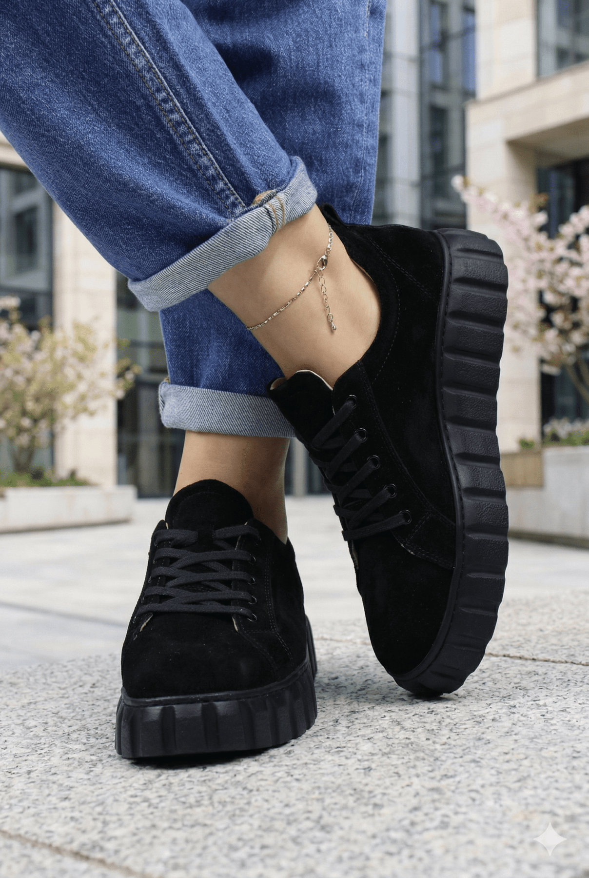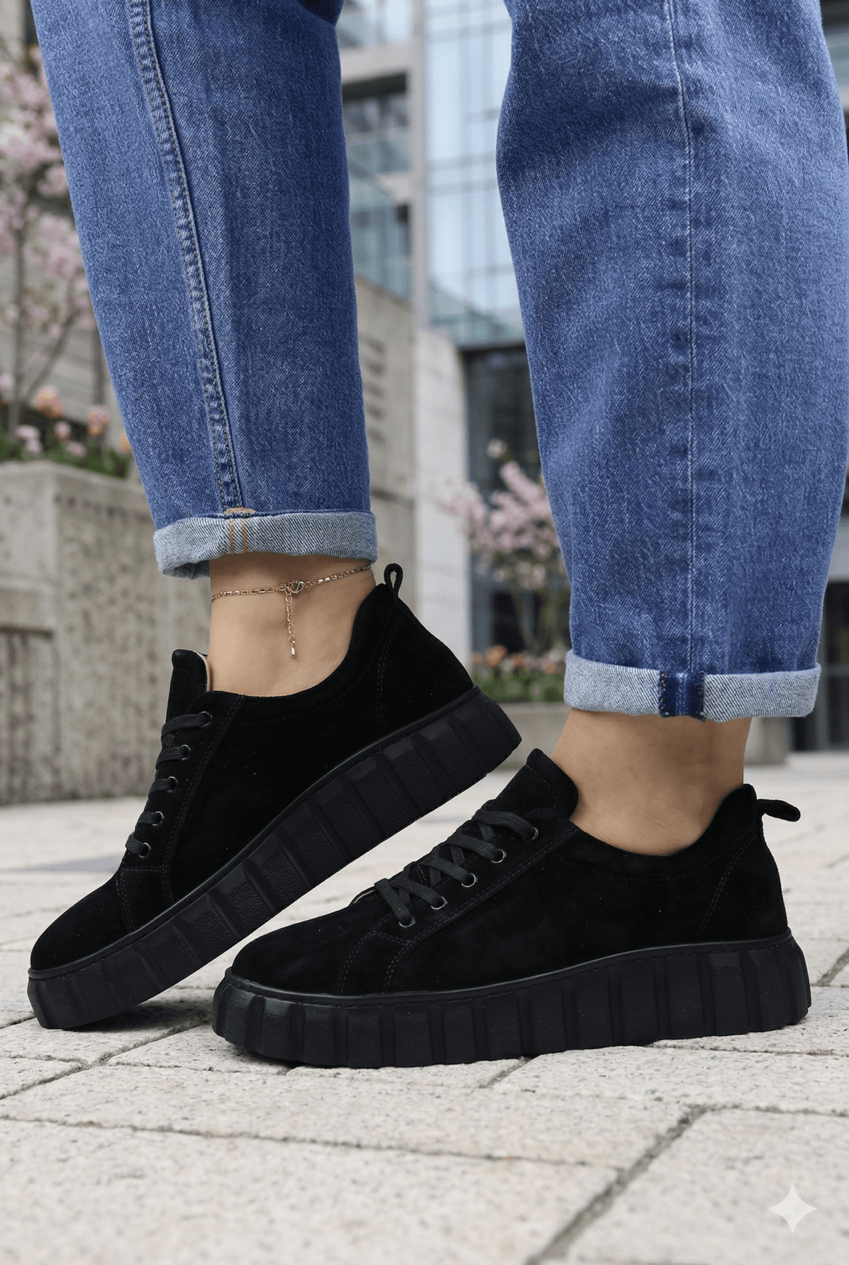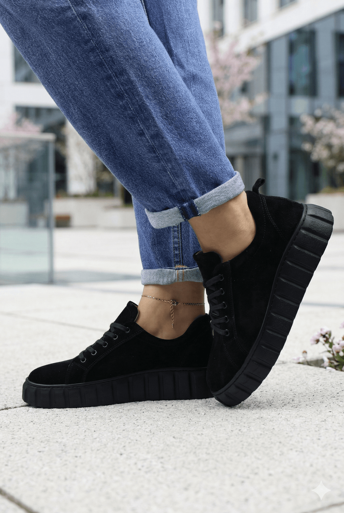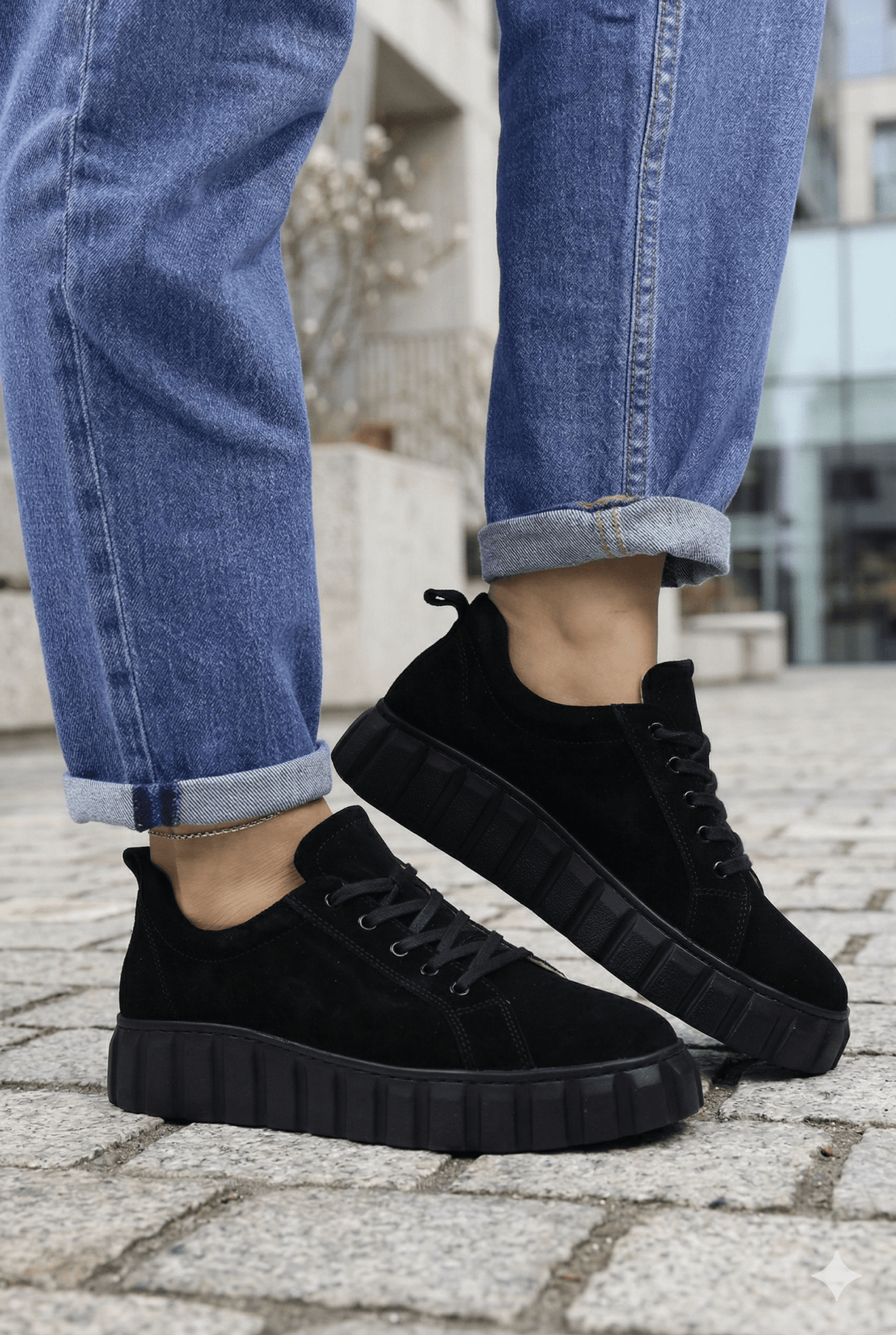 Sneakers din Piele Intoarsa cu Siret - TORE BLACKPantofi sport damaBigiottos Shoes