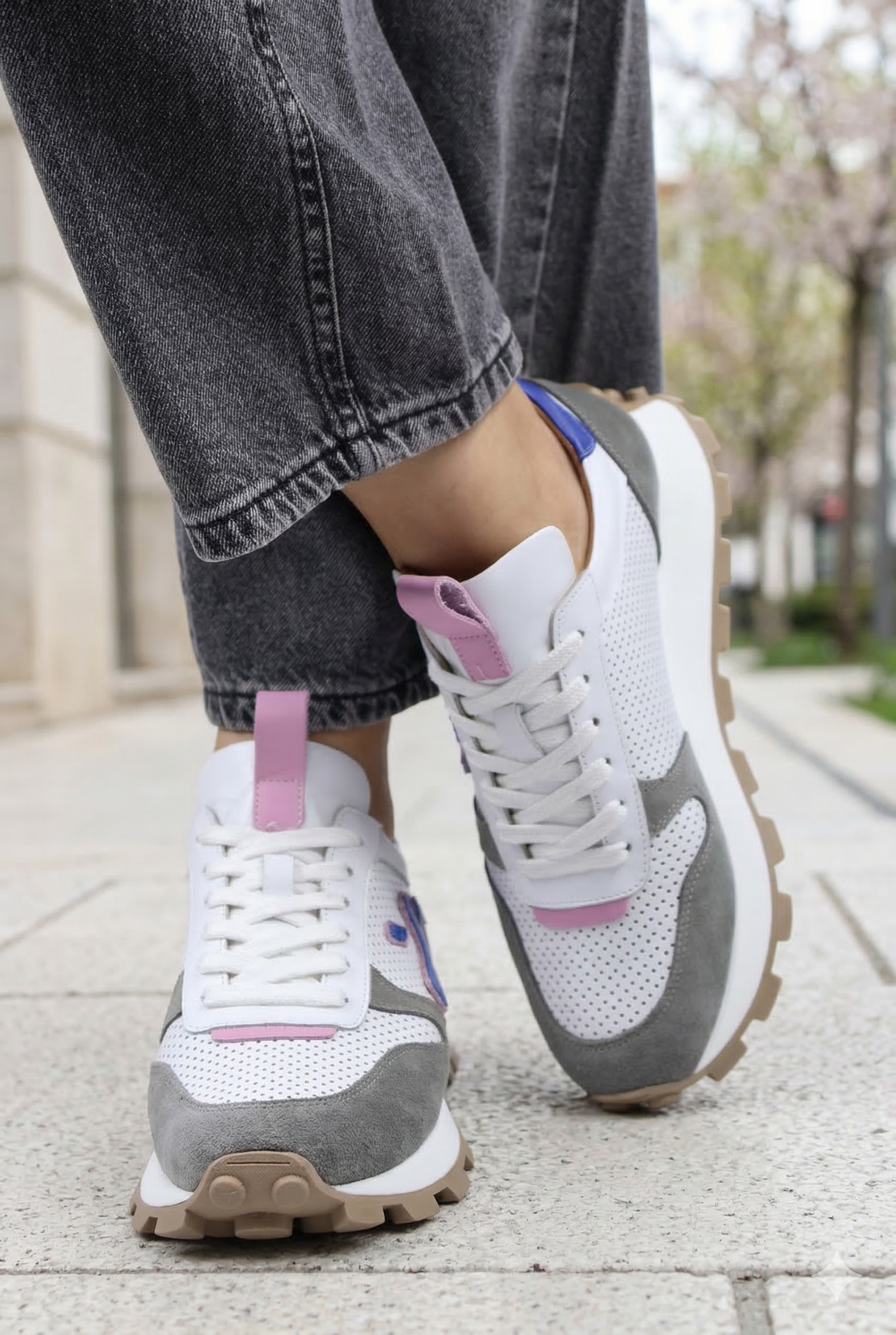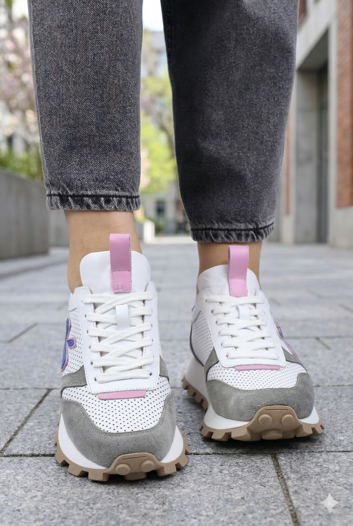 Acești sneakers din colecția Bigiottos combină materiale premium cu un design modern, evidențiat prin accentele vibrante.