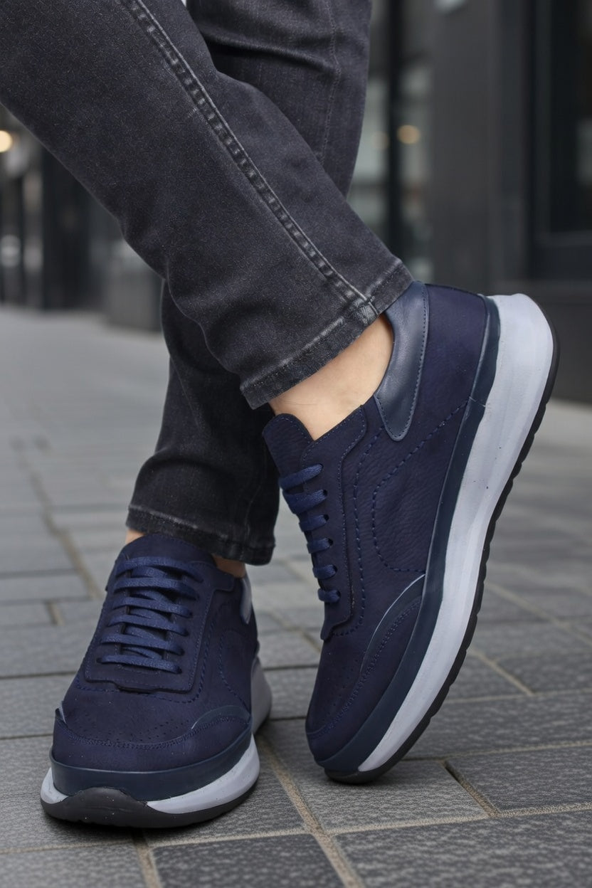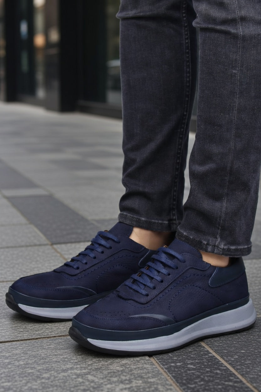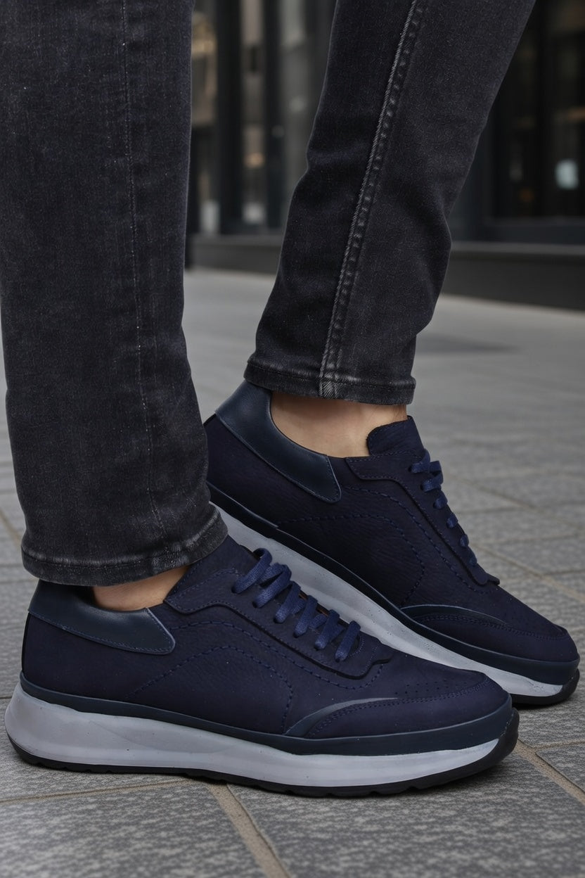 Modelul de sneakers bleumarin din piele naturală semnat Bigiottos este creat pentru bărbatul care preferă tonurile sofisticate și detaliile subtile.